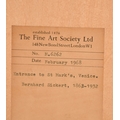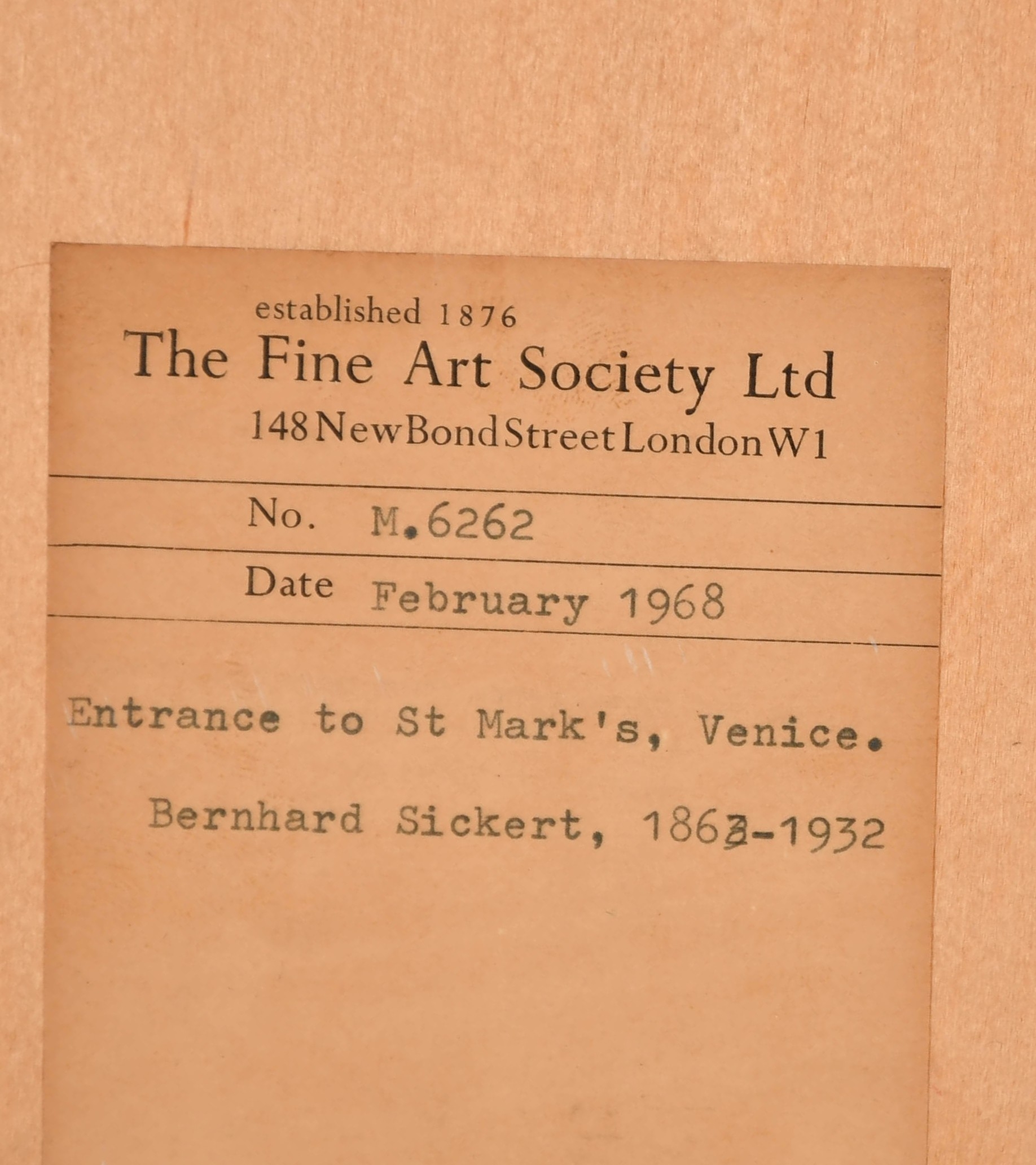 Bernhard Sickert (1862-1932) British. 'Entrance to St Mark's, Venice", Pastel, Signed with monogram and dated '29, and inscribed on a label verso, 12.5" x 9" (31.8 x 22.8cm). Provenance: The Fine Art Society Ltd, London