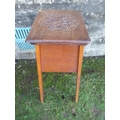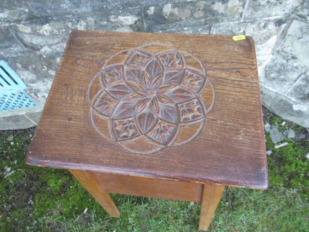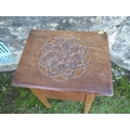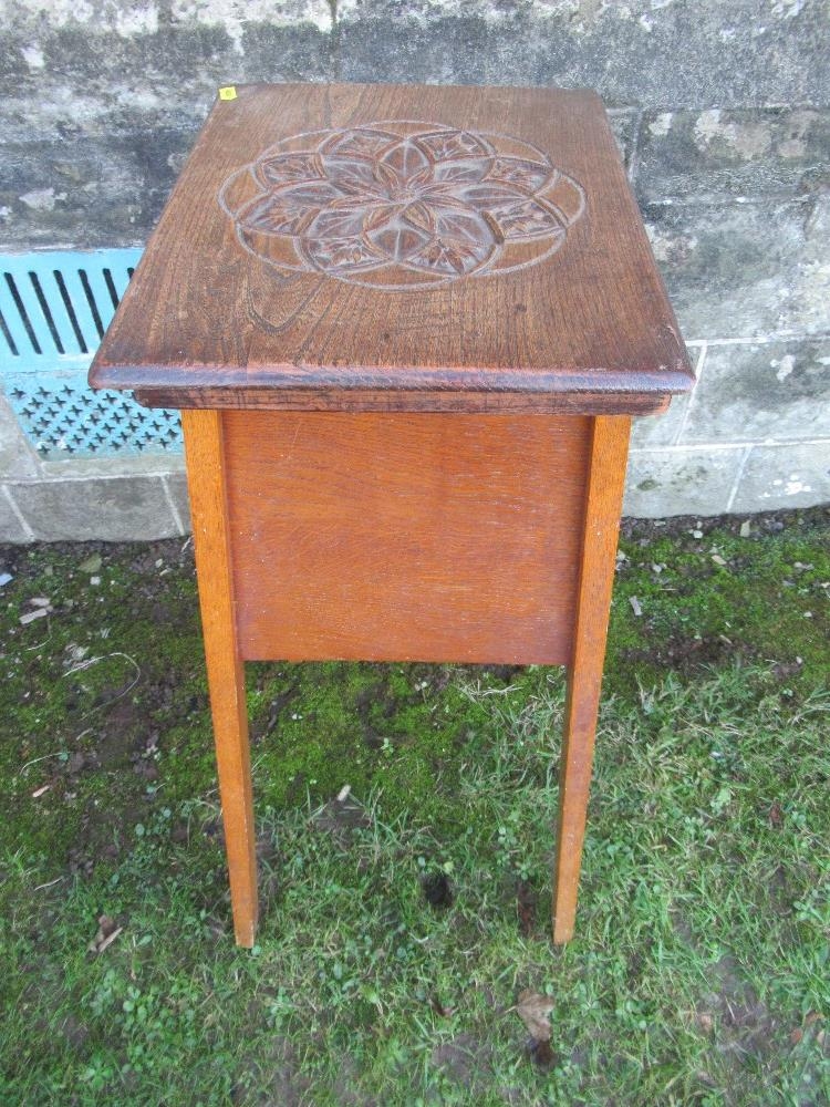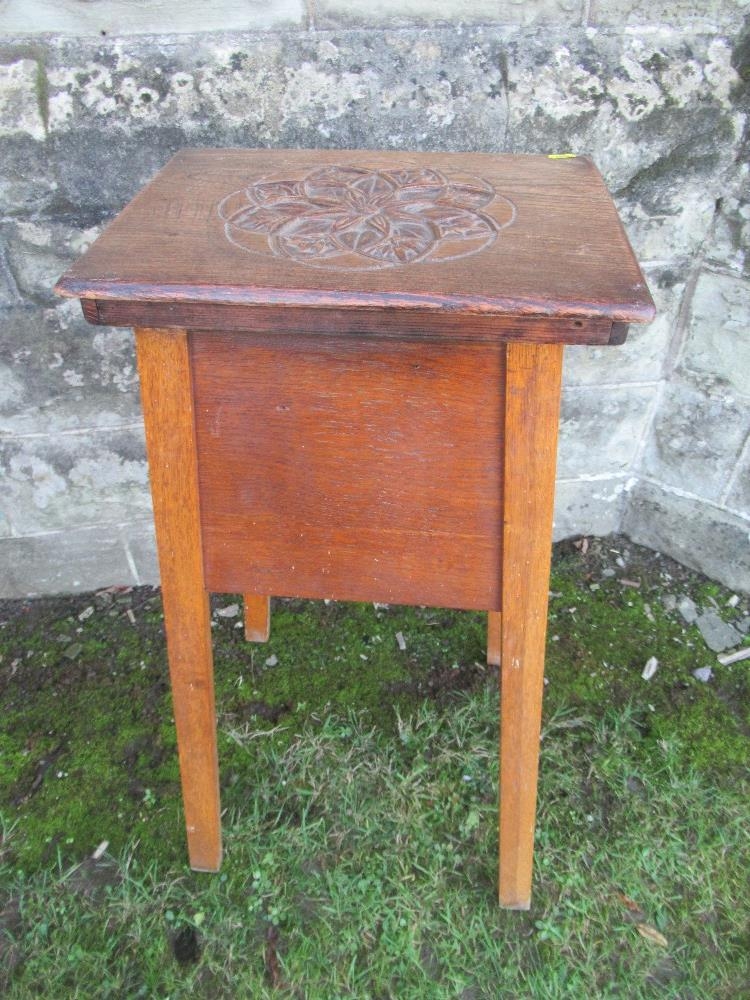 An oak jardiniere stand, with carved decoration to the top, 16ins x 13ins , height 32ins