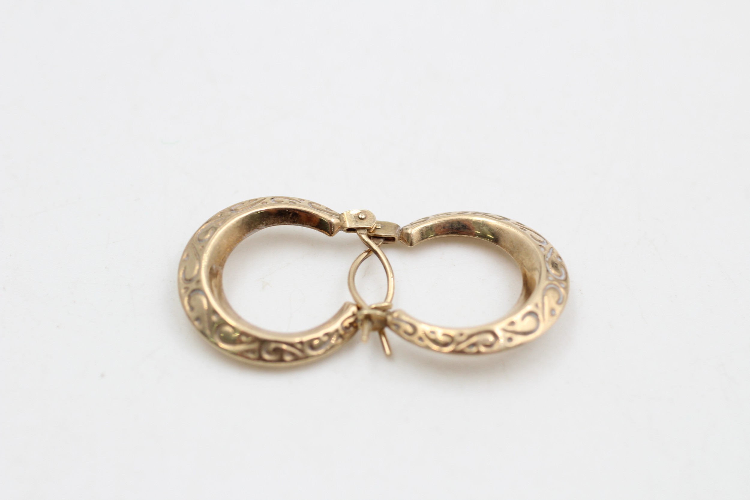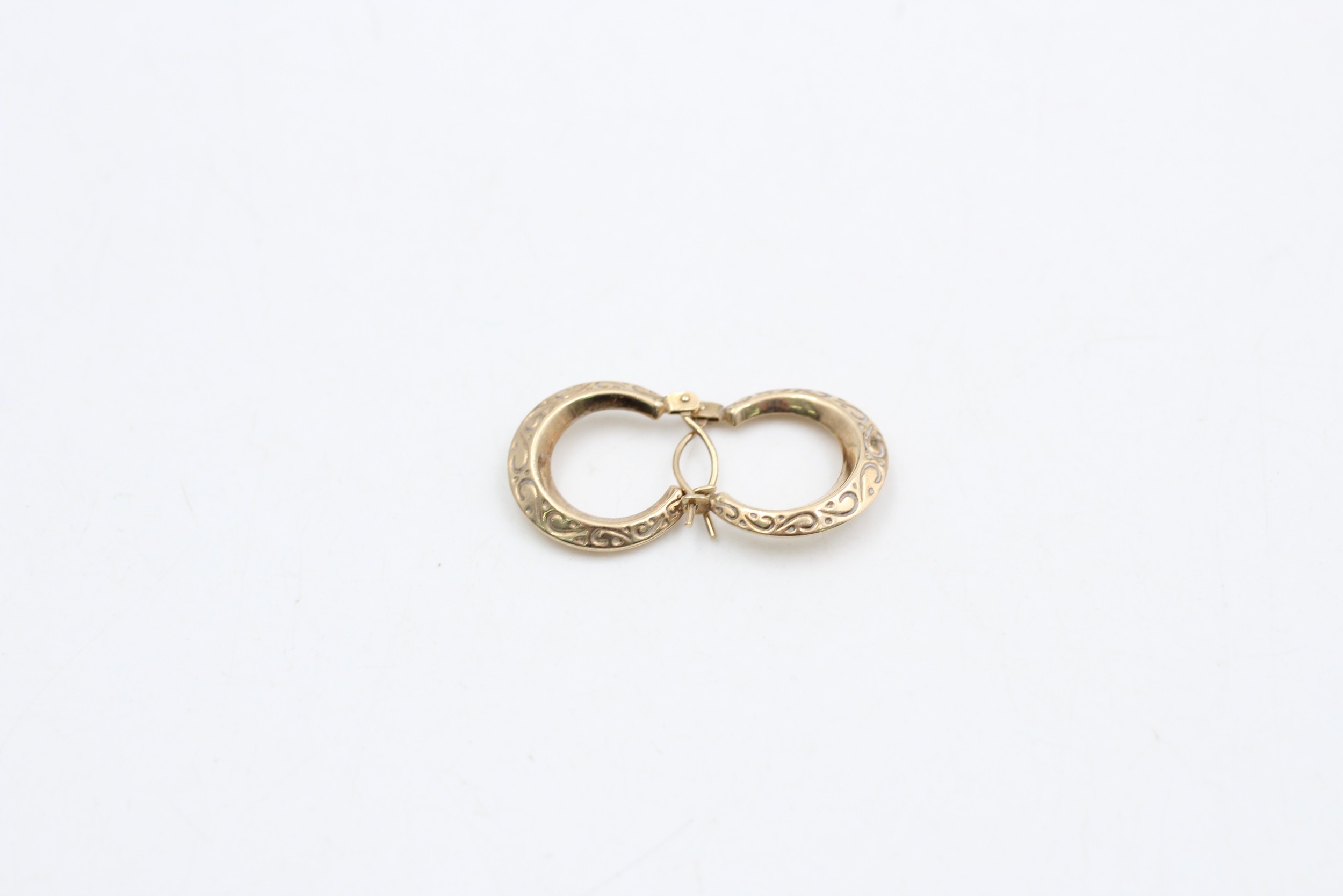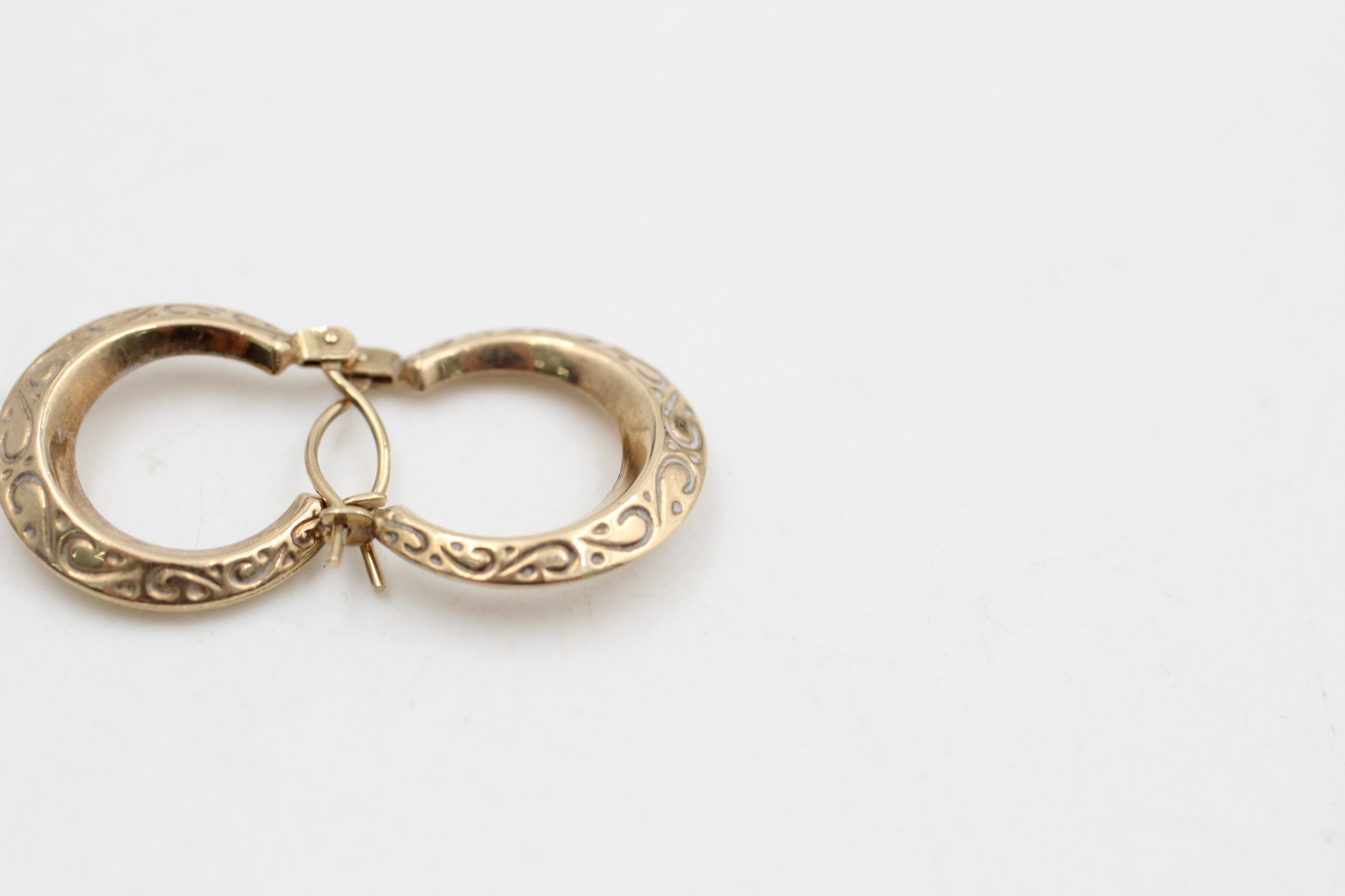 9ct gold vintage etched hoop earrings (1g)