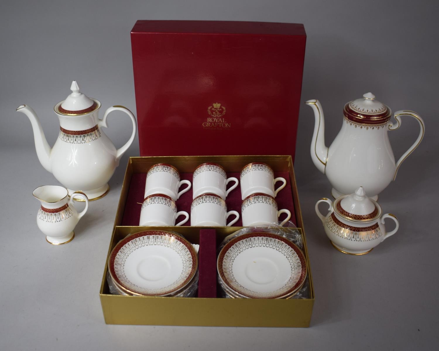 A Royal Grafton Majestic Pattern Coffee Set to Comprise Two Coffee Pots, Sugar Bowl, Cream Jug and a Cased Set of Coffee Cans and Saucers