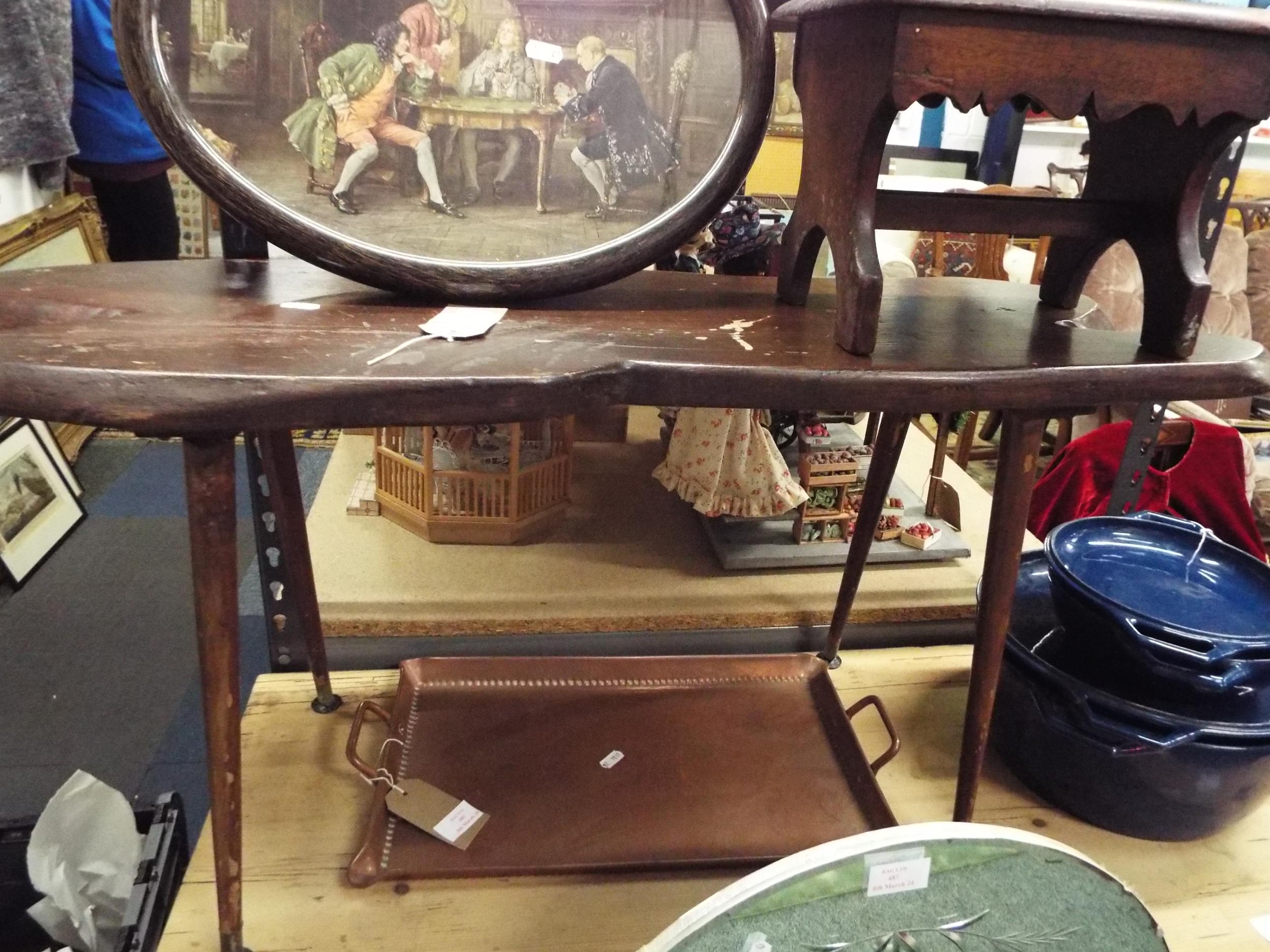 A mid-century tree bark coffee table