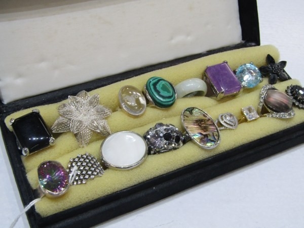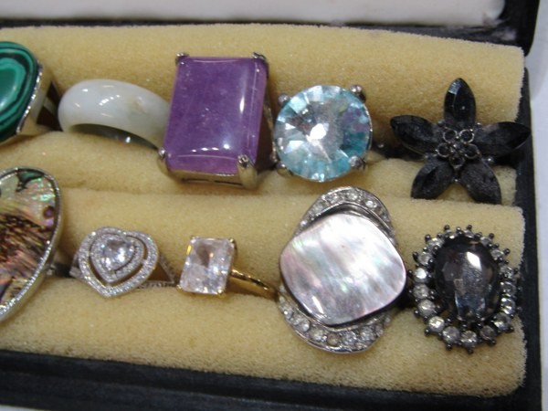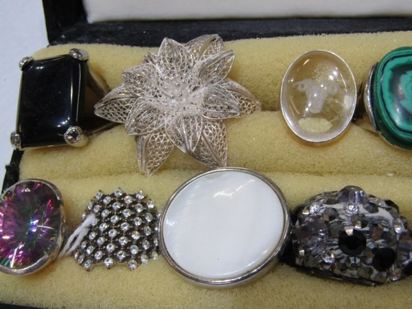 SILVER & COSTUME RINGS, 17 assorted silver & costume rings many stone set including agate etc. various sizes & designs