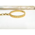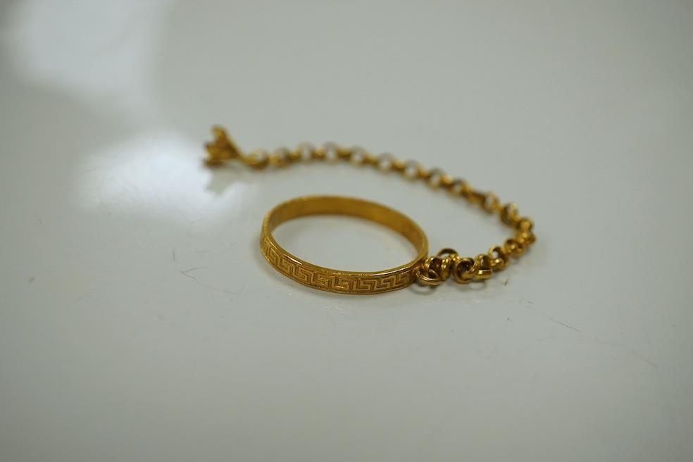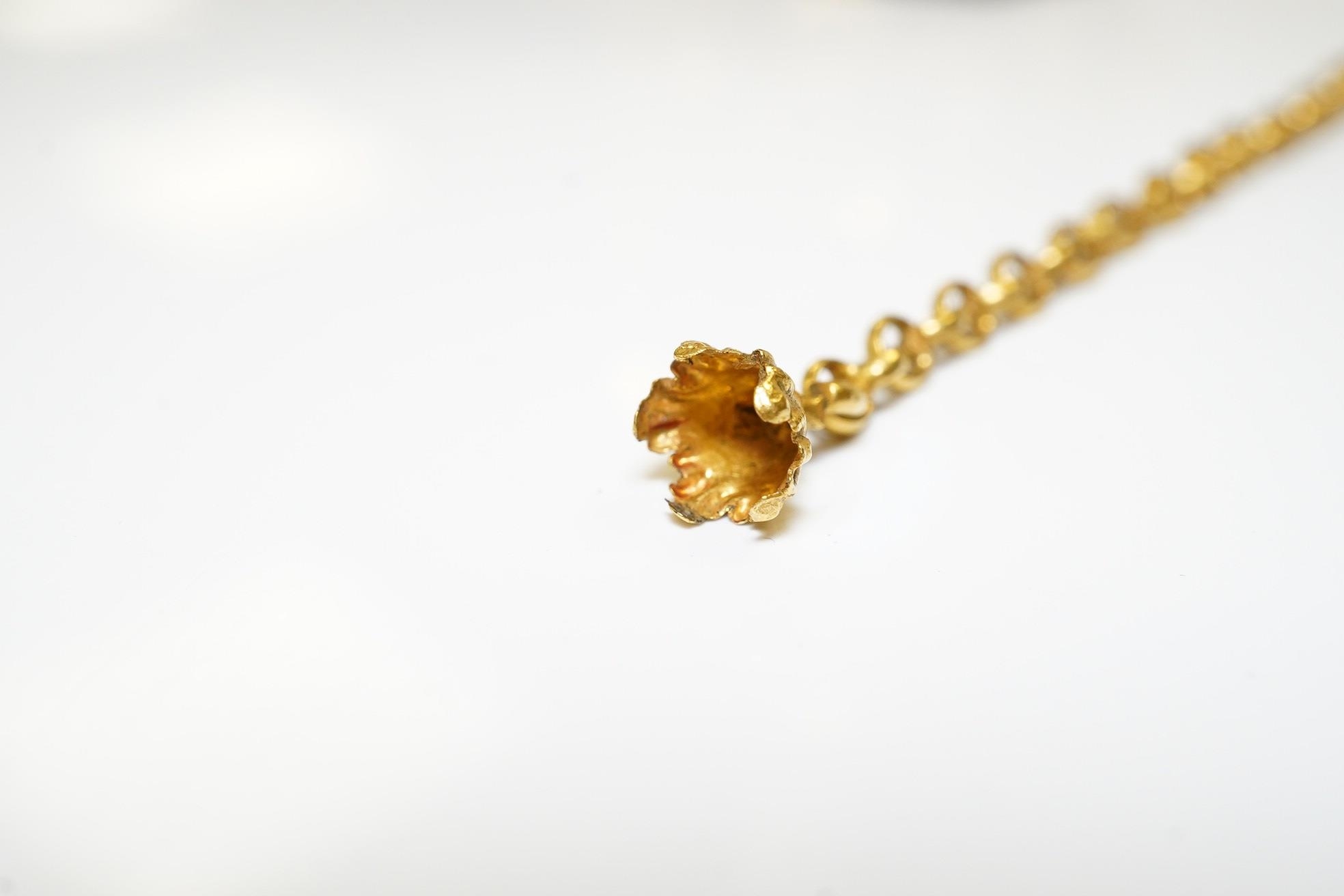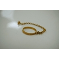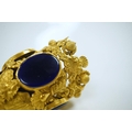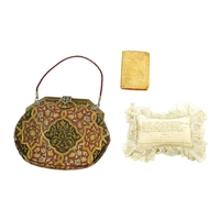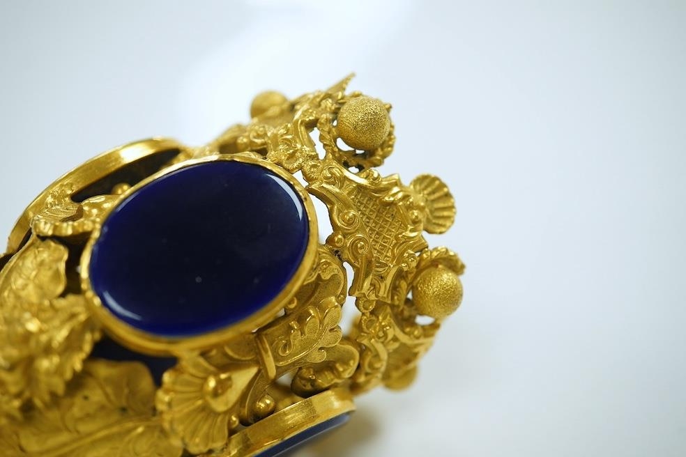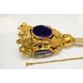 A 19th century Pinchbeck posy holder with mother of pearl handle and inset blue glass panels. Condition - safety chain detached