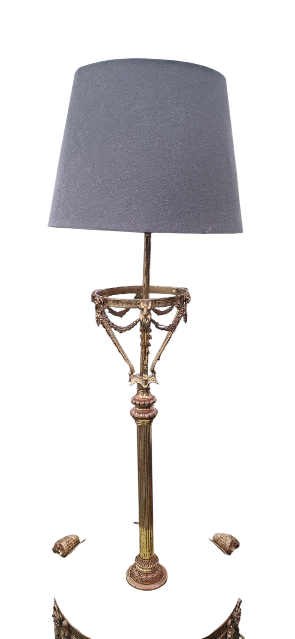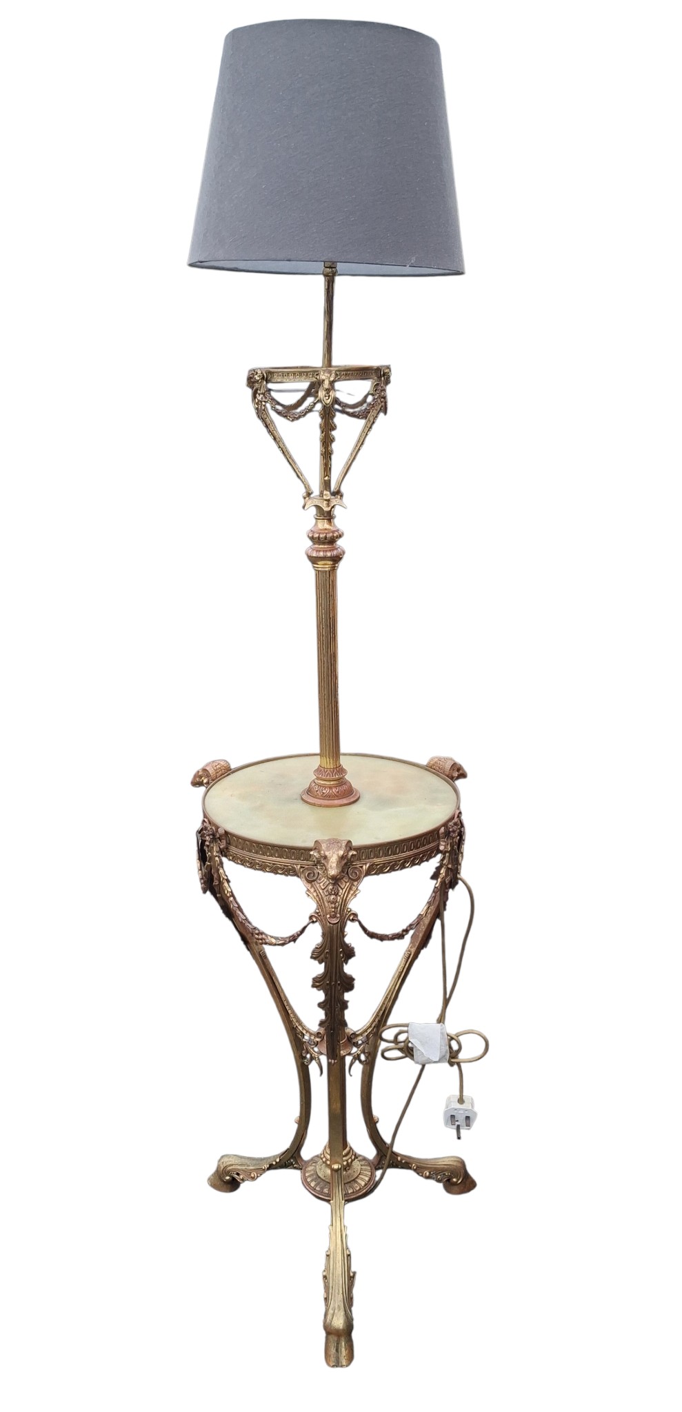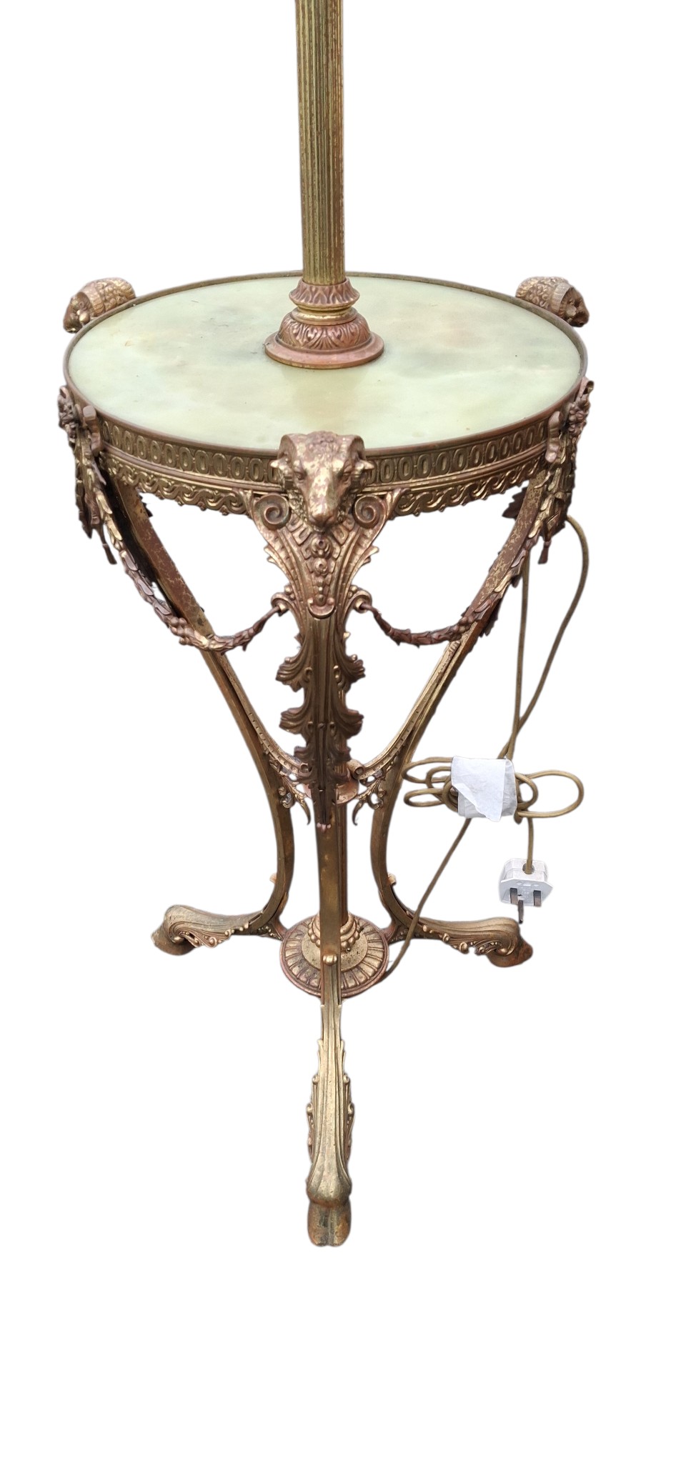 A WONDERFUL VICTORIAN BRASS AND MARBLE STANDARD LAMP WITH LIONS HEAD DECORATION