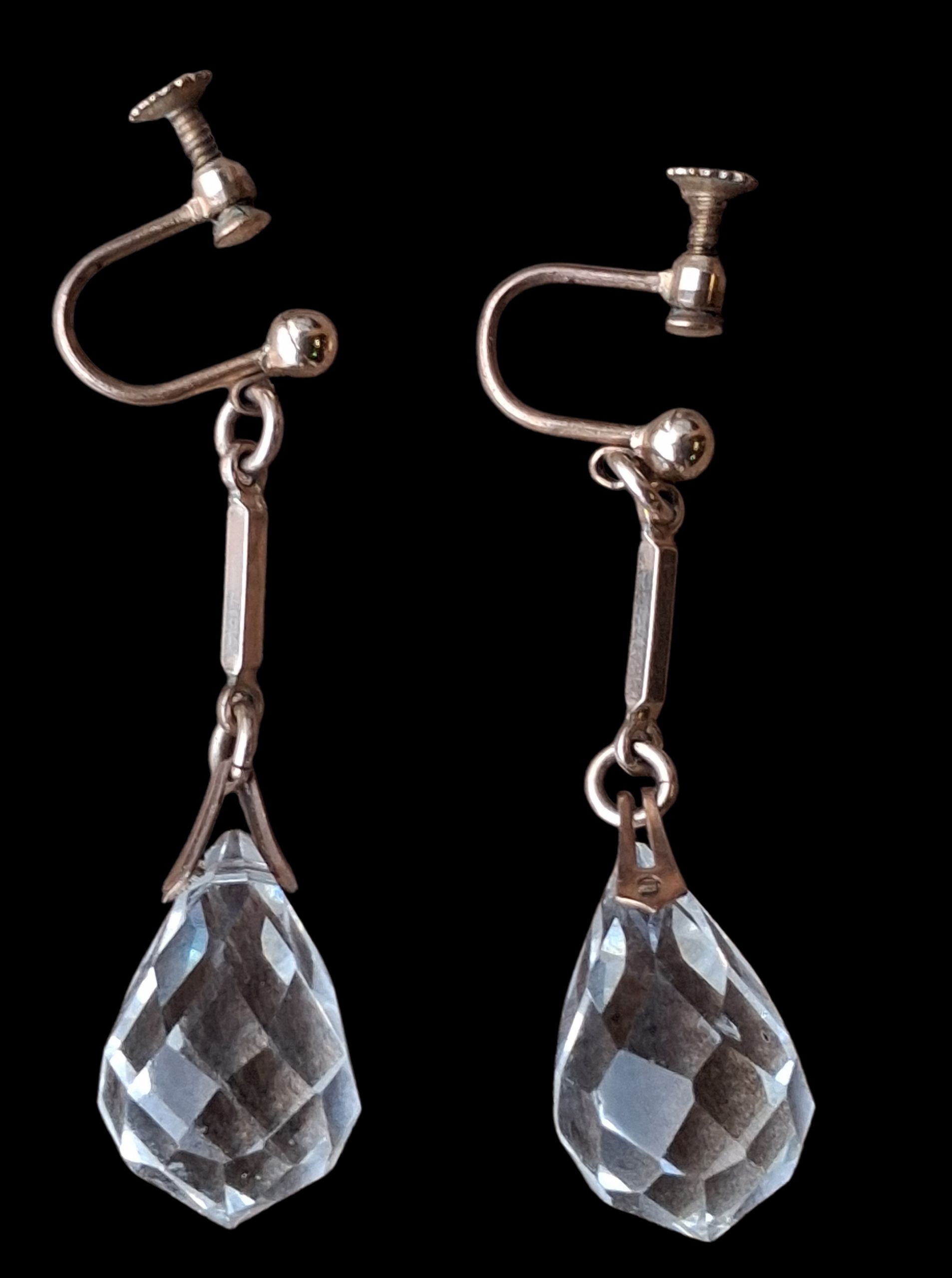 A PAIR OF 9CT GOLD CRYSTAL DROP EARRINGS
