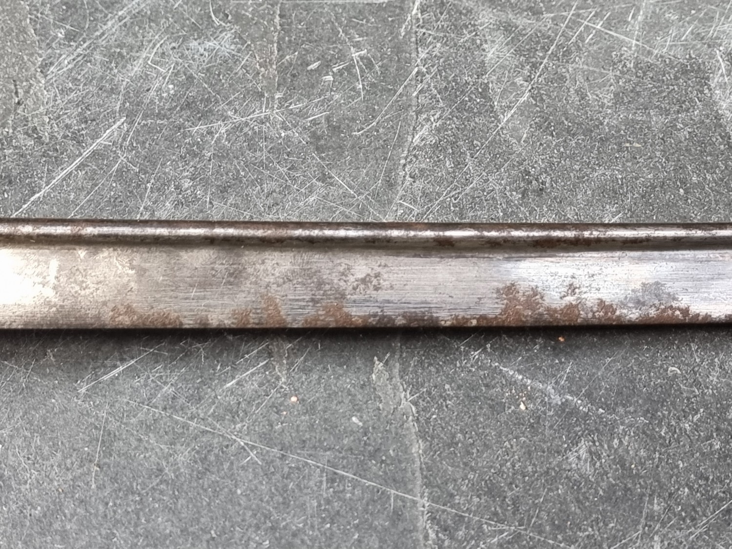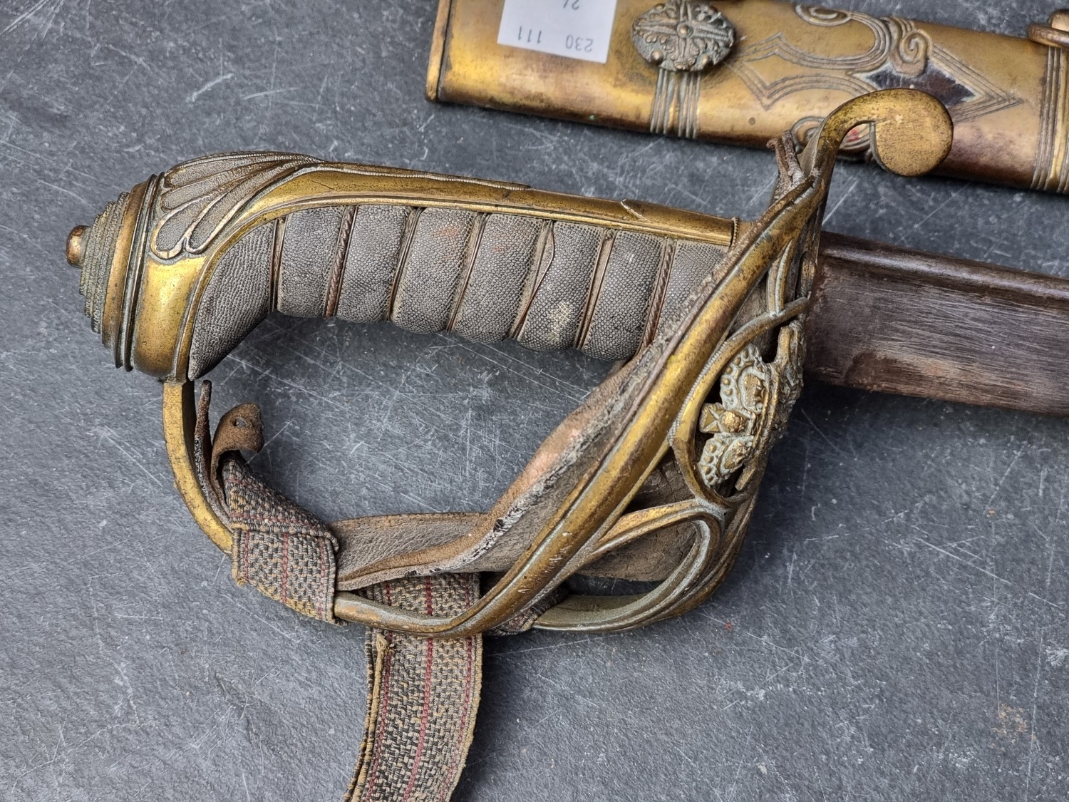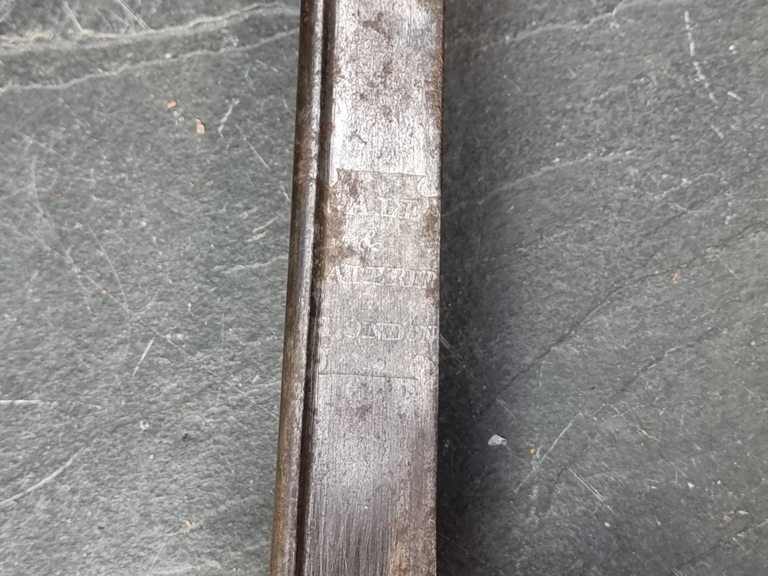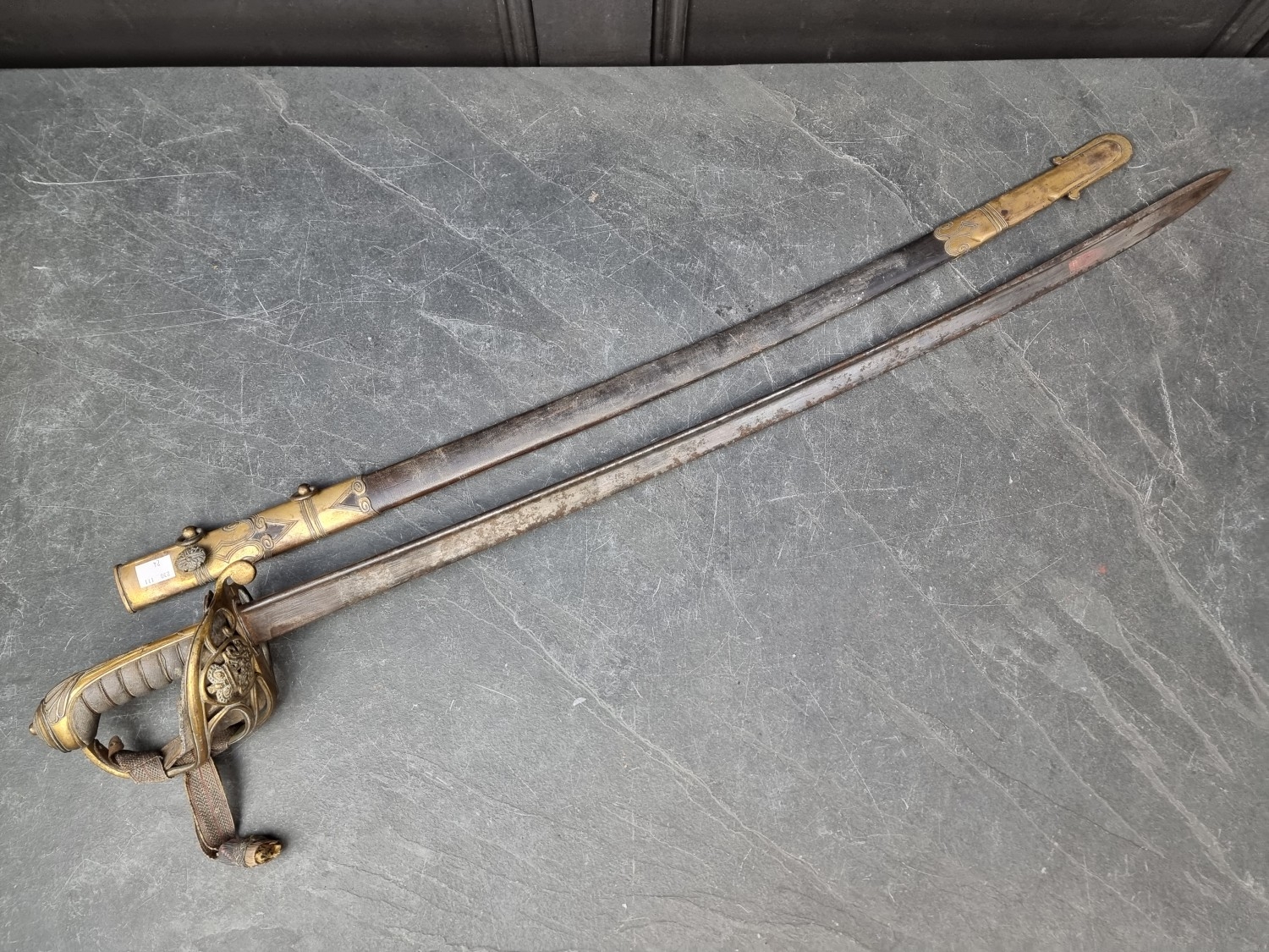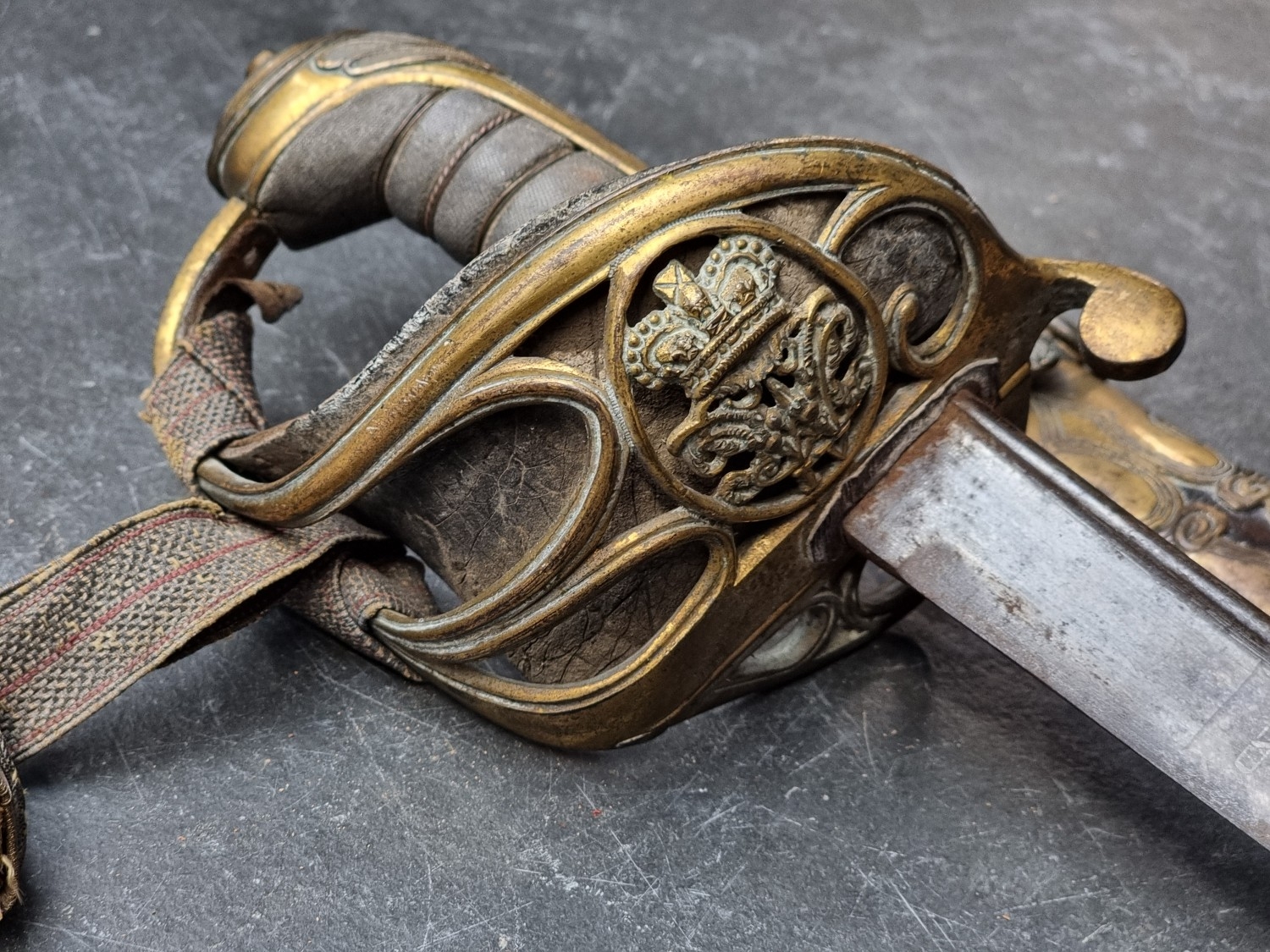 A George IV 1822 pattern Infantry officers sword and scabbard, with 81.5cm blade, by Gale & Caterer London, overall length 95.5cm.