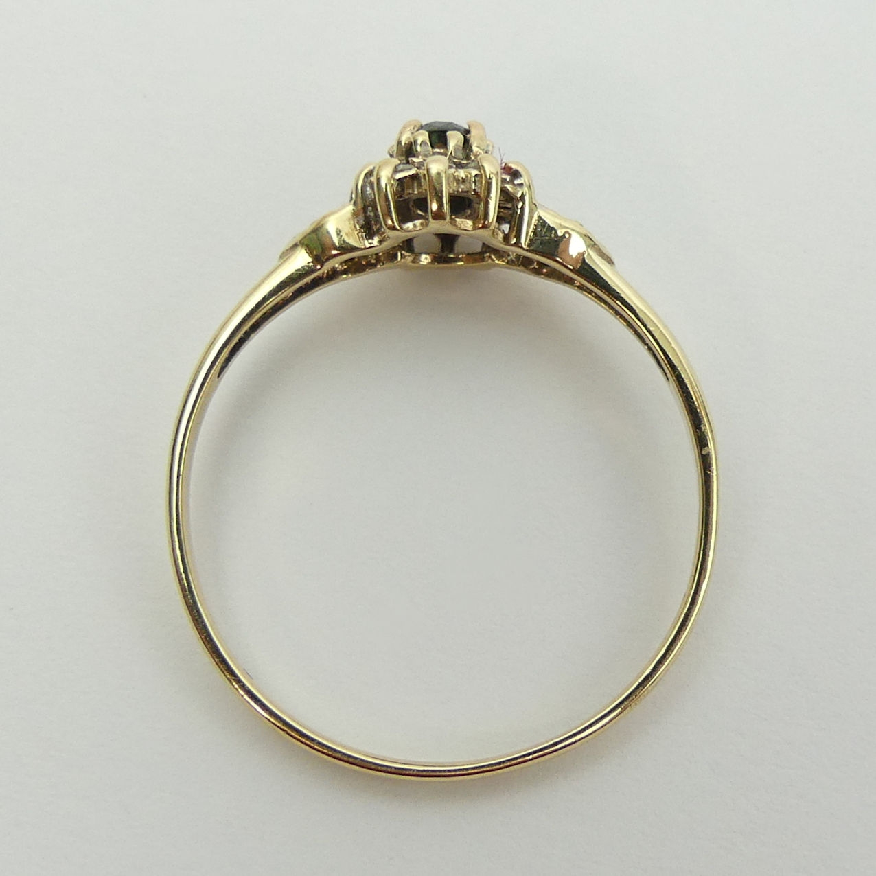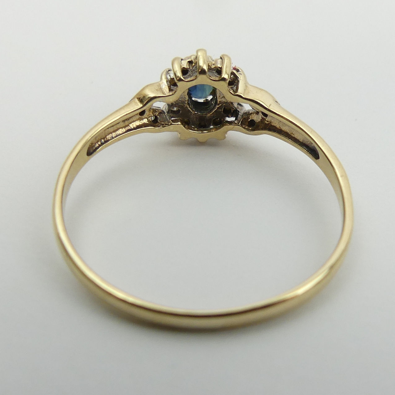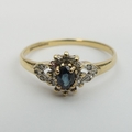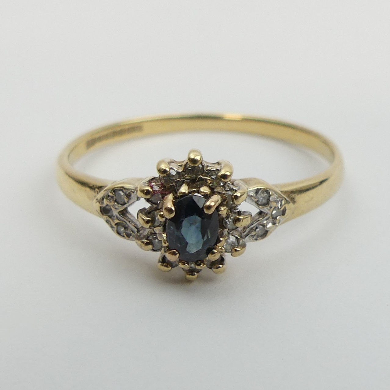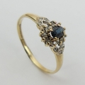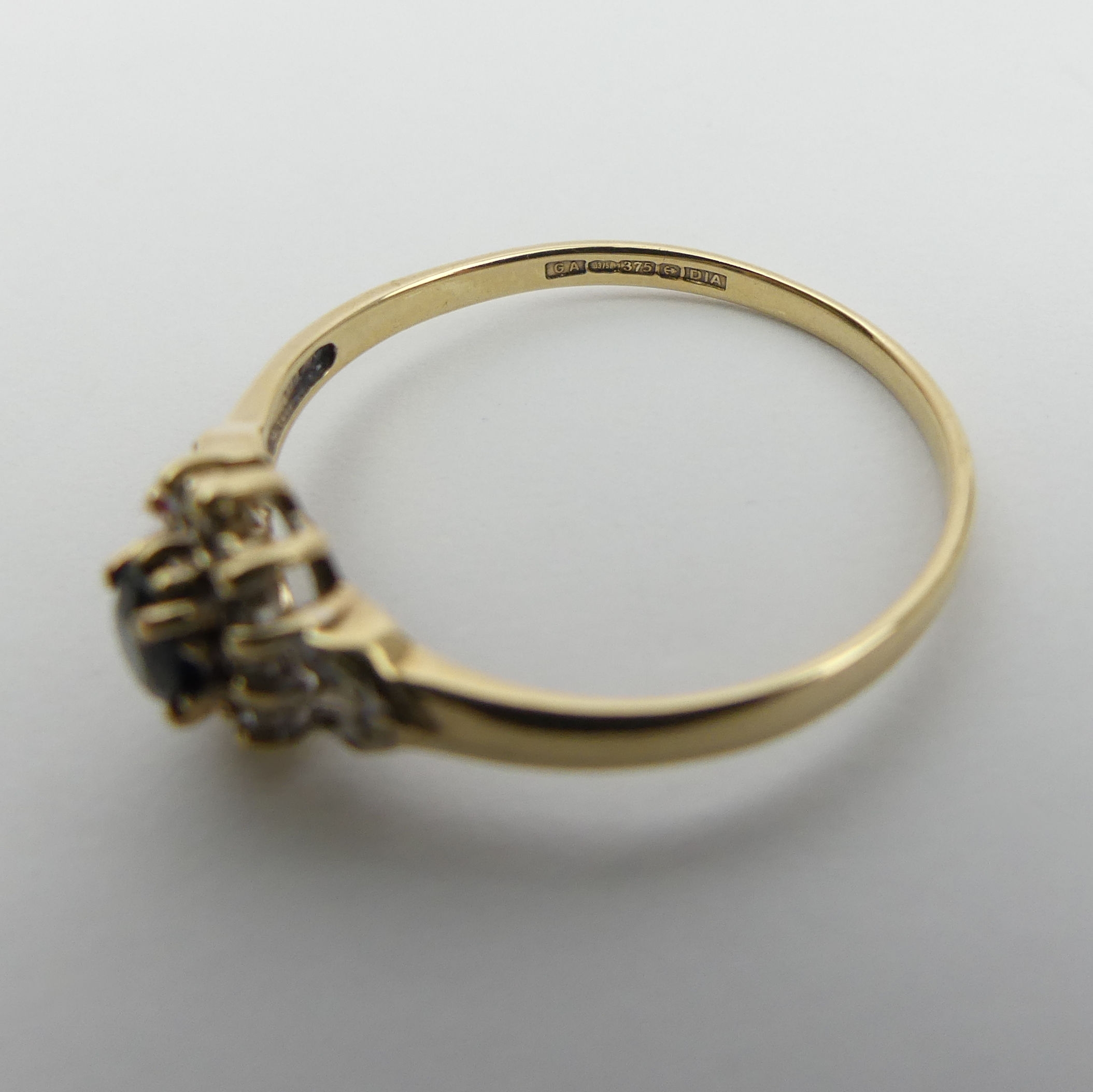 9ct gold sapphire and diamond ring, 1.7 grams. Size U, 8.8 mm wide. UK Postage £12.