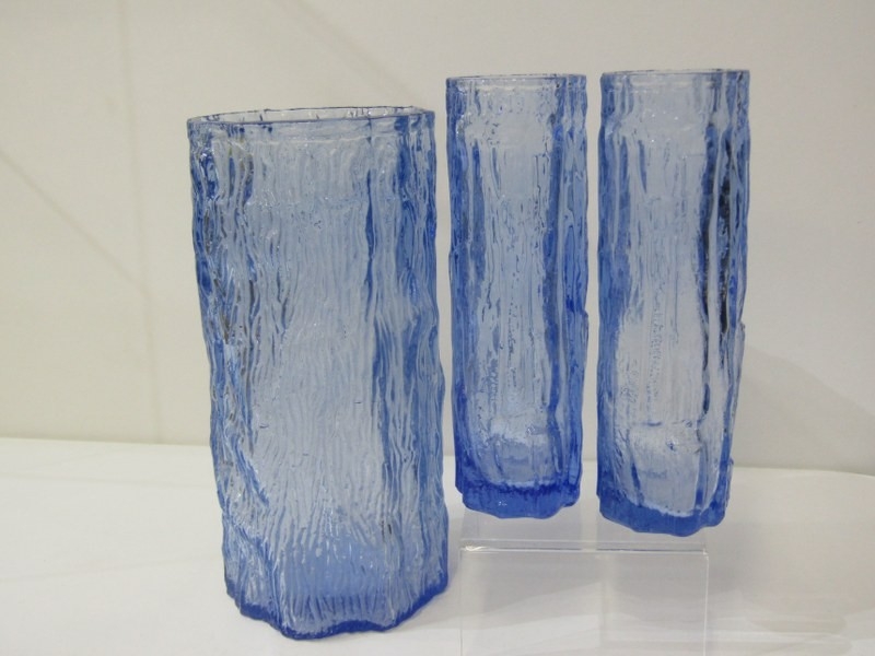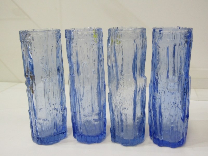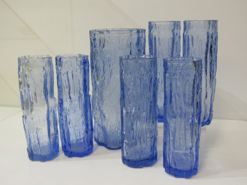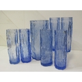 WHITEFRIARS STYLE WATER SET, a set of 6 Whitefriars style bark effect glasses, 17cm height, together with a larger 21cm vase