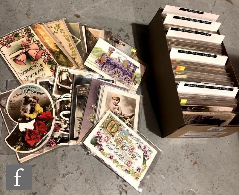 A collection of loose Edwardian postcards to include mainly greetings, Christmas, Easter, New Year and mixed cards, one box. (qty)
