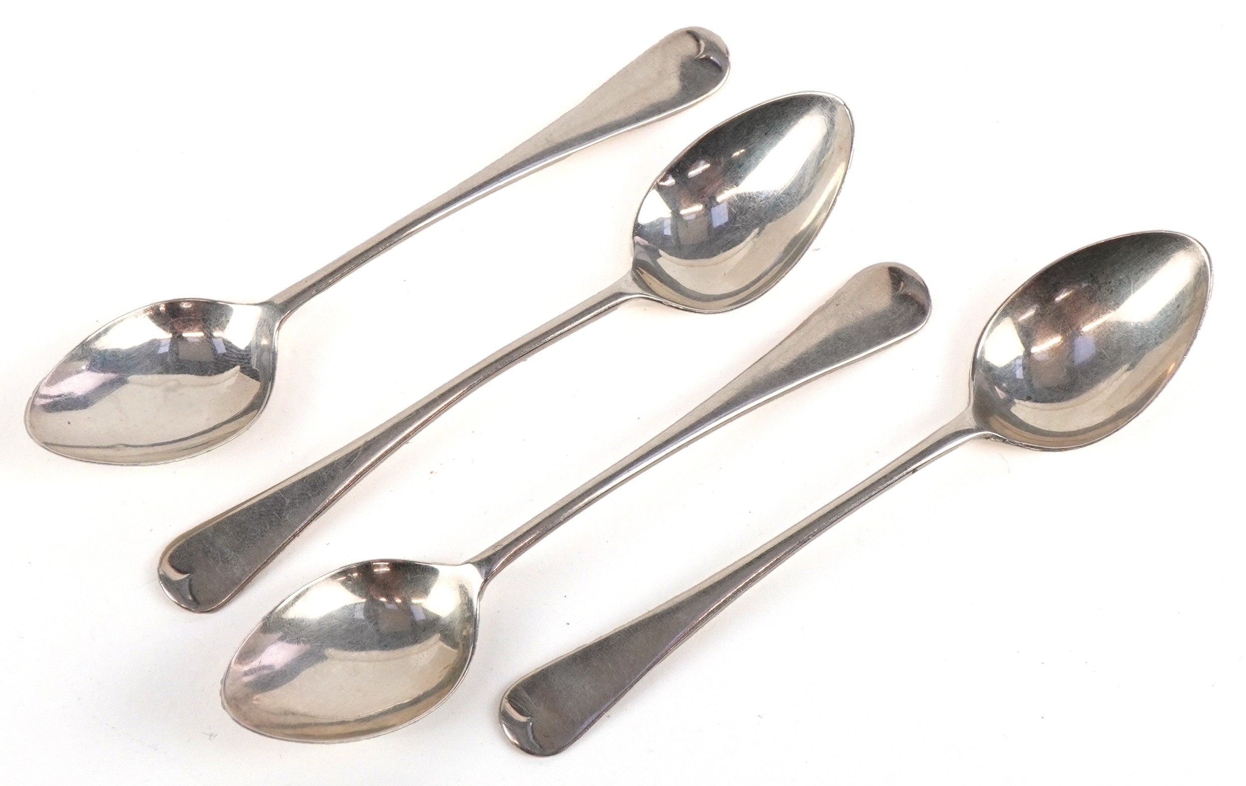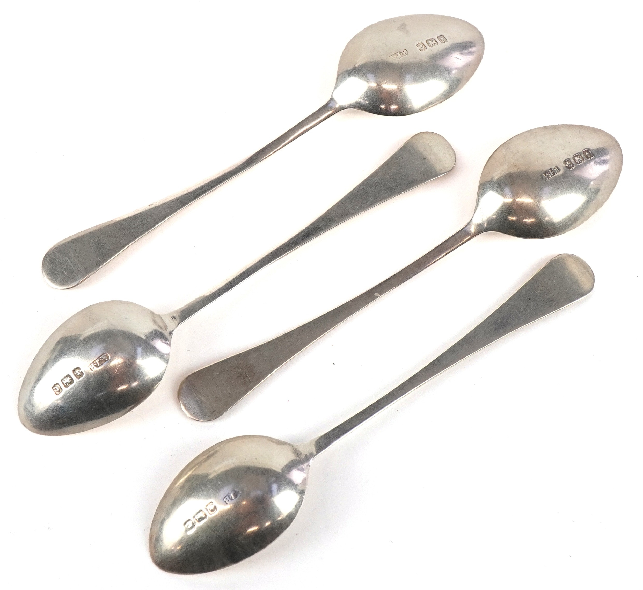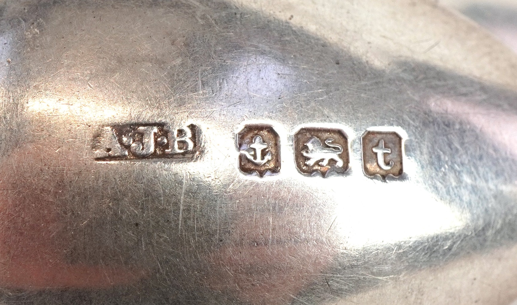 Four silver teaspoons, AJB maker's mark, Birmingham 1918, 10.5cm in length, total 30.0g.