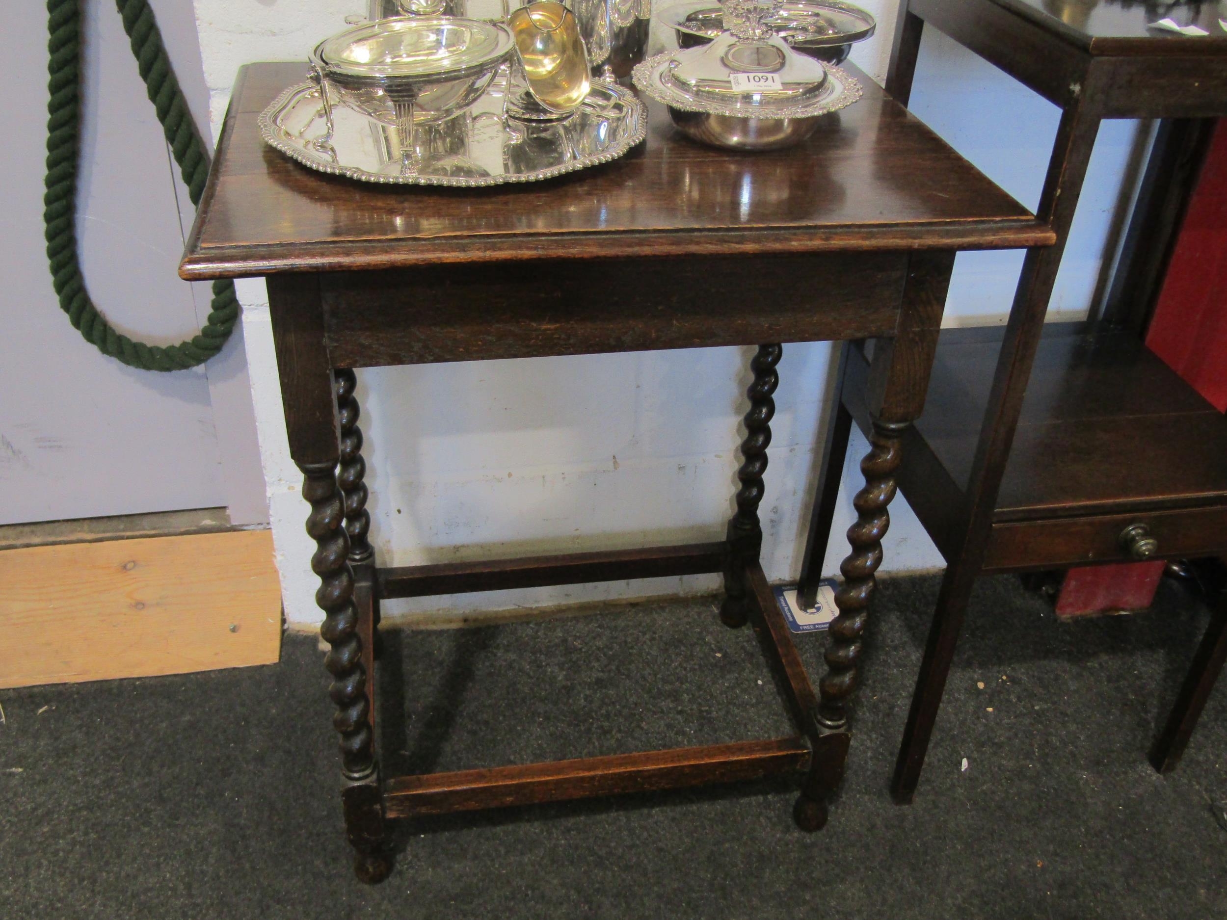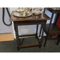 A small early 20th Century oak table with barley twist legs, measuring 24" long x 17.5" wide x 28.5" high