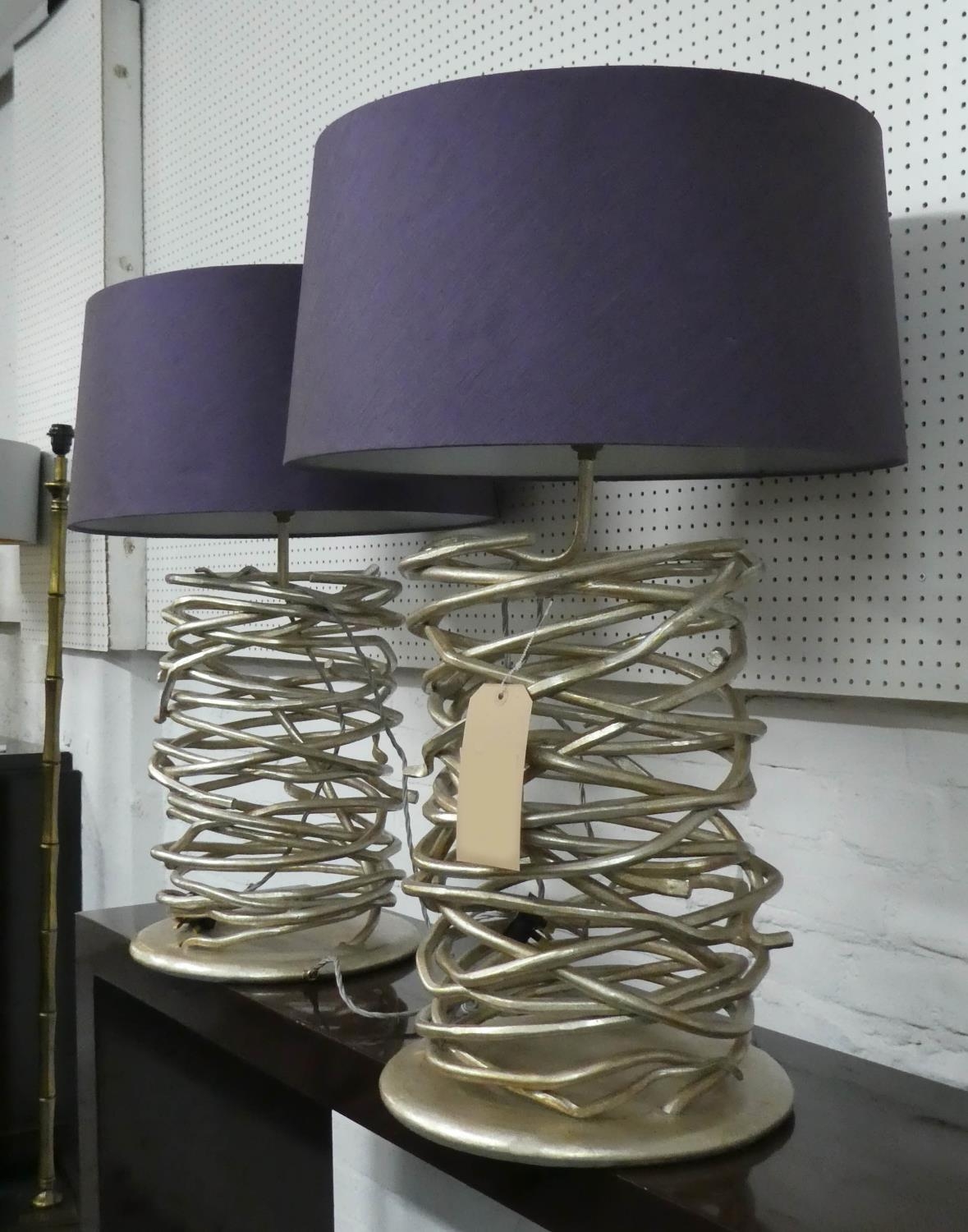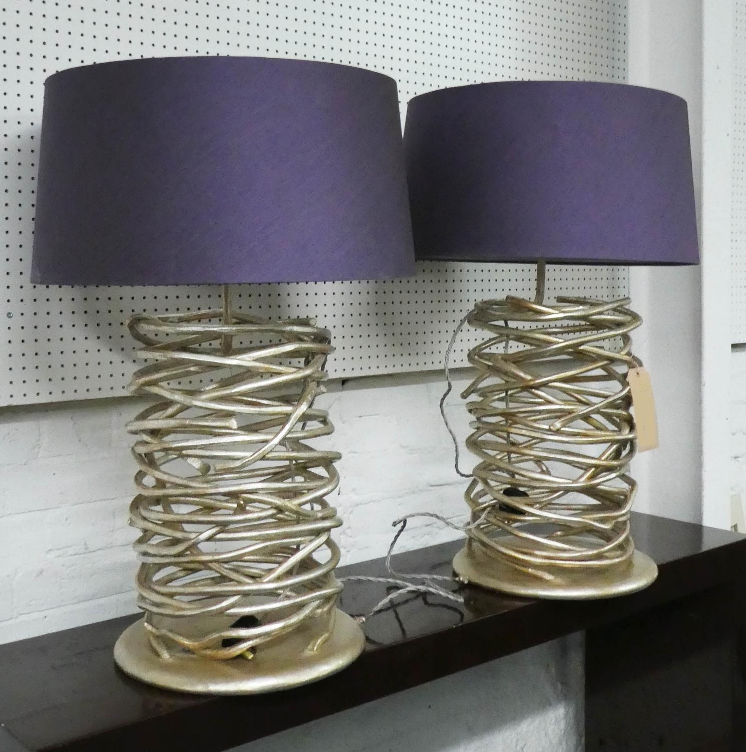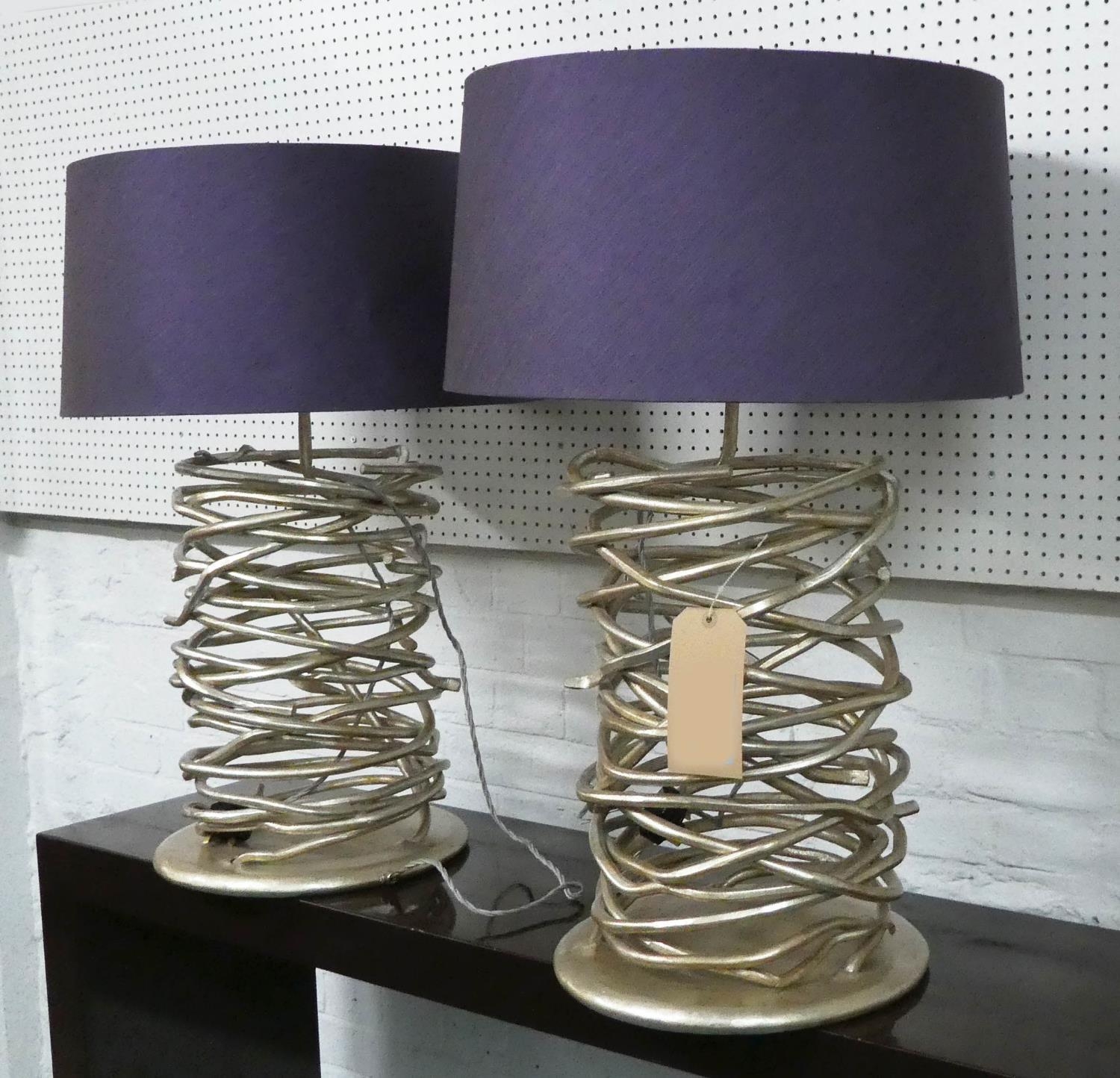 TABLE LAMPS, a pair, 76cm H with shades contemporary design. (2)