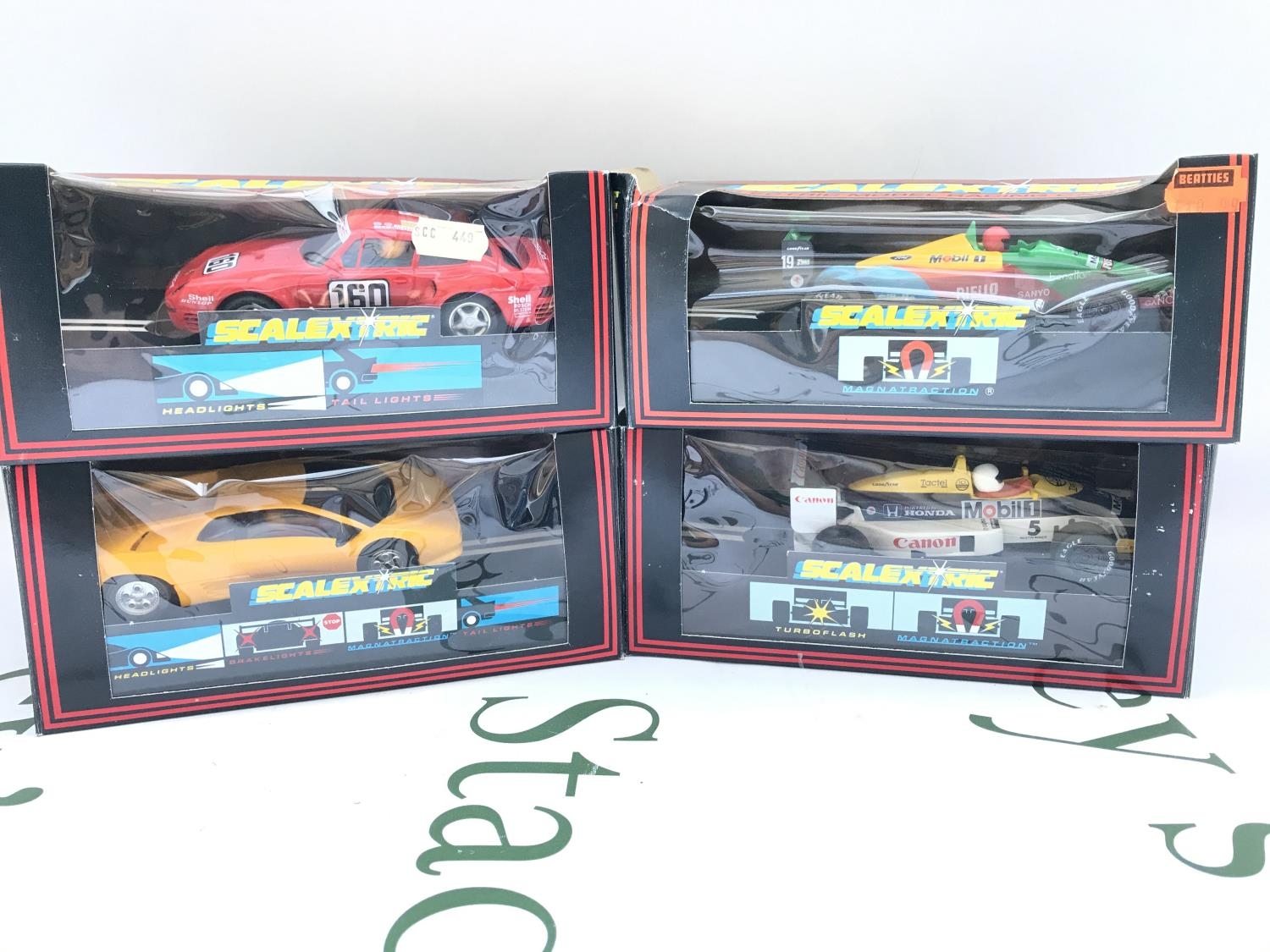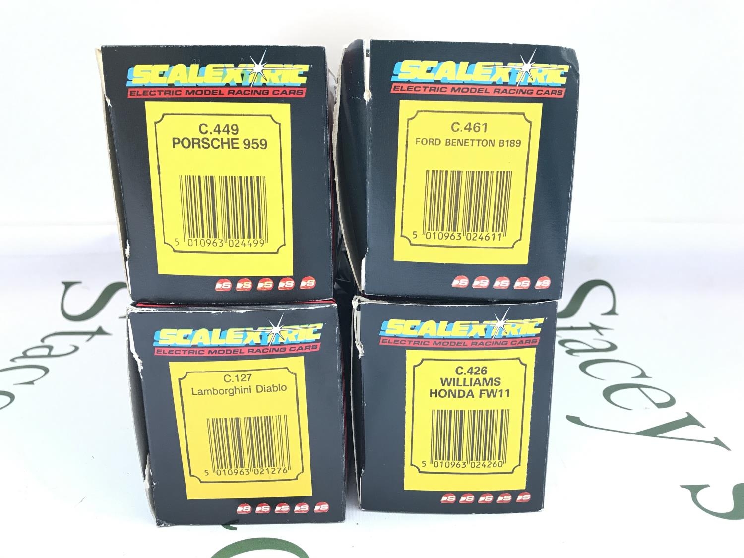 4 X Boxed Scalextric Cars A Porsche 959 #C.449. A Ford Benetton B189 #C.461. A Lamborghini Diablo #C.127 And A Williams Honda FW11 #C.426. No Reserve.