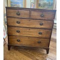 A George III Mahogany Chest of Drawers. Circa 1800. Of two short and three long graduated drawers. On bracket feet. 102cm x 99.5cm x 49cm (in need of some restoration)