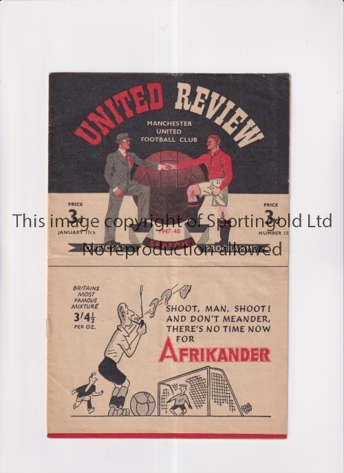 MANCHESTER UNITED V ARSENAL 1948 / RECORD LEAGUE ATTENDANCE Programme for the League match at United 17/1/1948, slightly creased and scores entered. In Arsenal's 1947/8 Championship season the match at Maine Road was seen by 83,260 which at the time was the record attendance for a League match. Generally good
