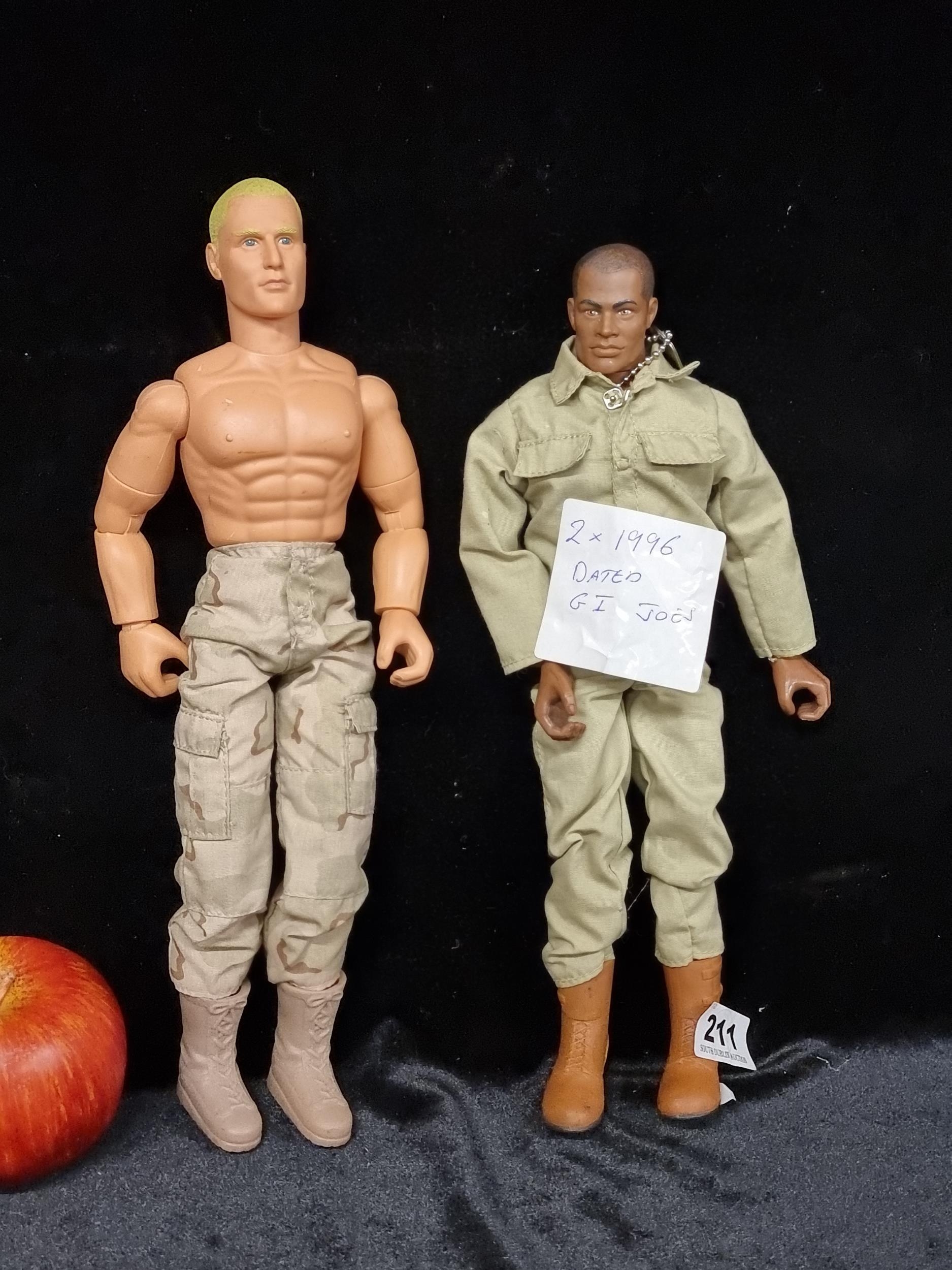 Two 1996 date G.I. Joe's mostly clothed, including dog tags. Little fella on the left is ripped.