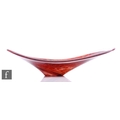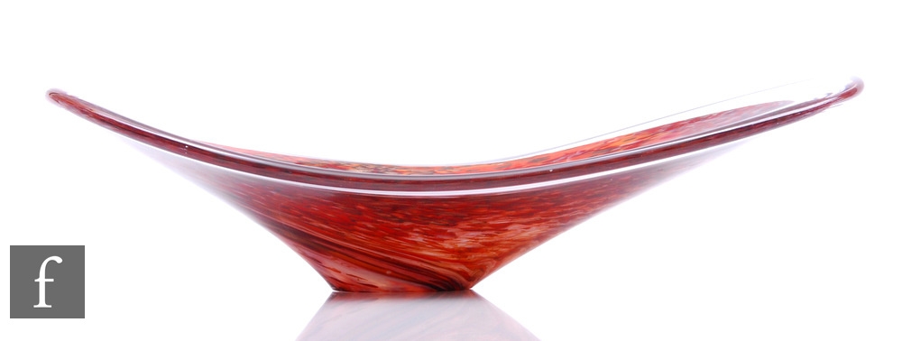 Unattributed maker - A post war glass bowl of elliptical form, with a mottled ruby core with bronze aventurine inclusions cased in clear, length 41cm.