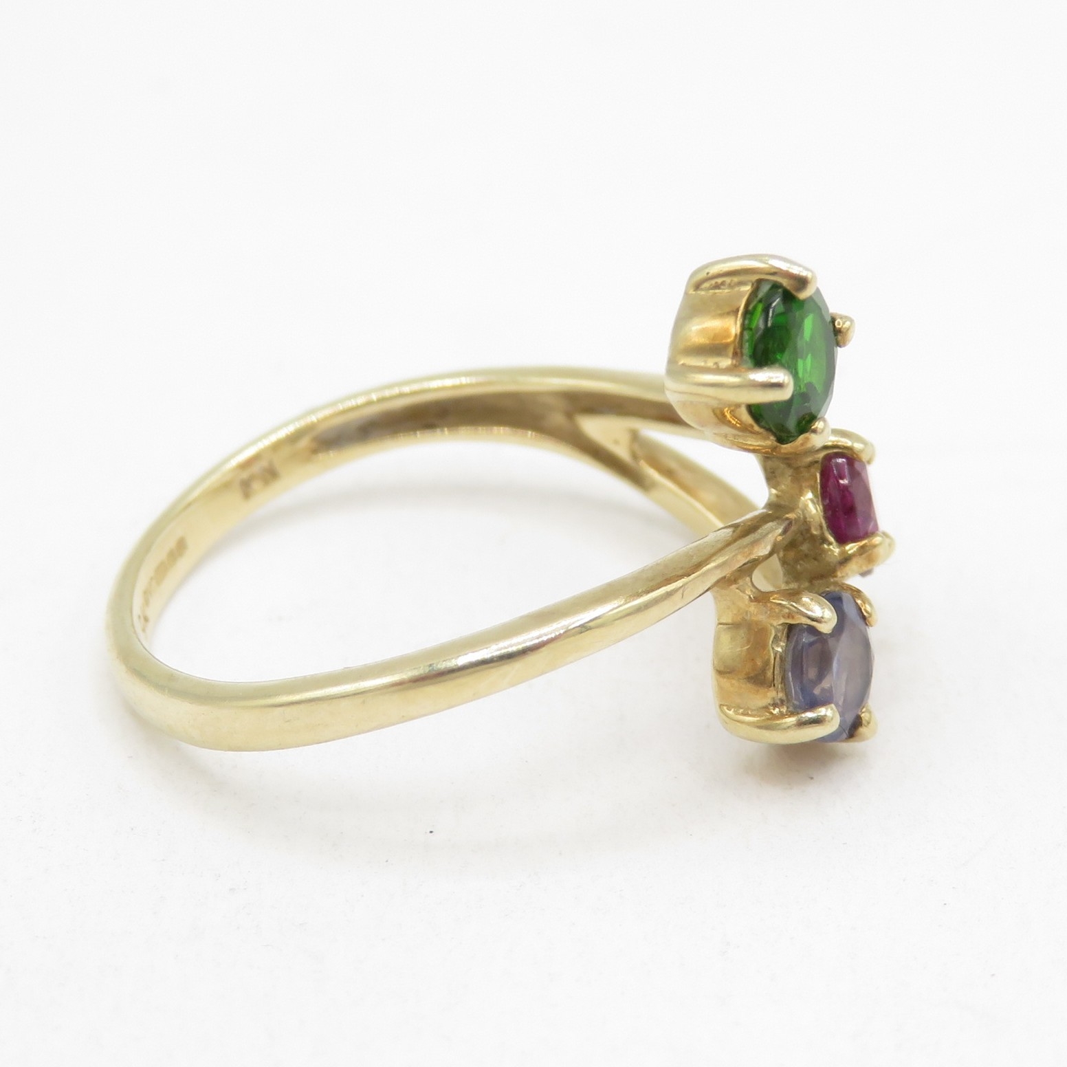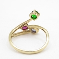 9ct gold pink, green and blue gemstone ring (2g) size M