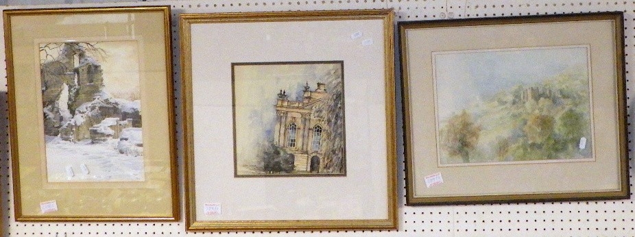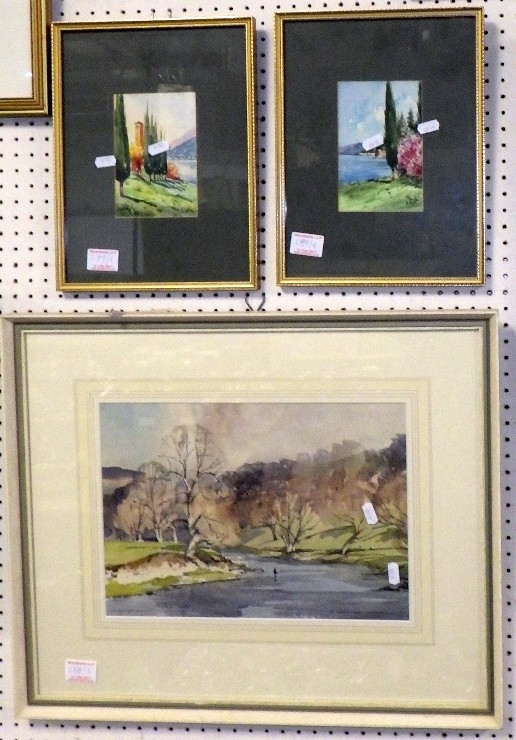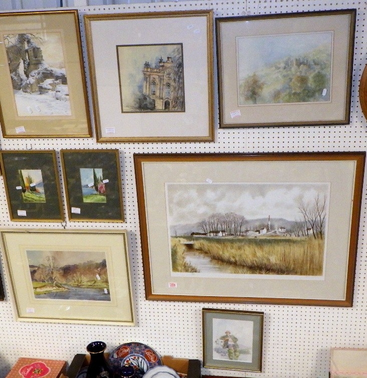 A qty of misc watercolours together with a Jeremy King pencil signed print (8)