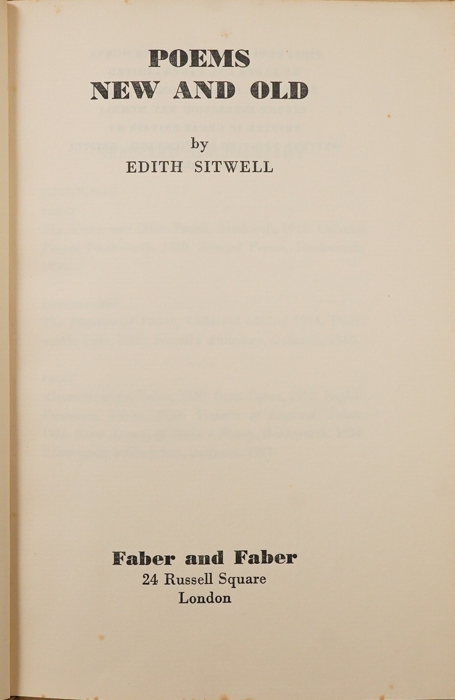 ° ° Sitwell , Edith - Poems New and Old, 2nd impression, original paper boards. Faber Faber, 1941, * inscribed at front- 'Christa Grund.... with gratitude from Edith Sitwell'