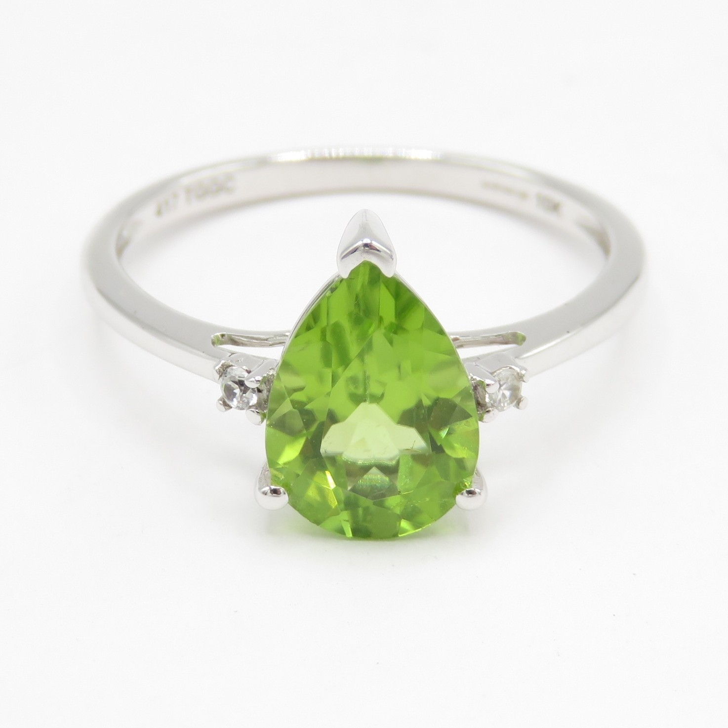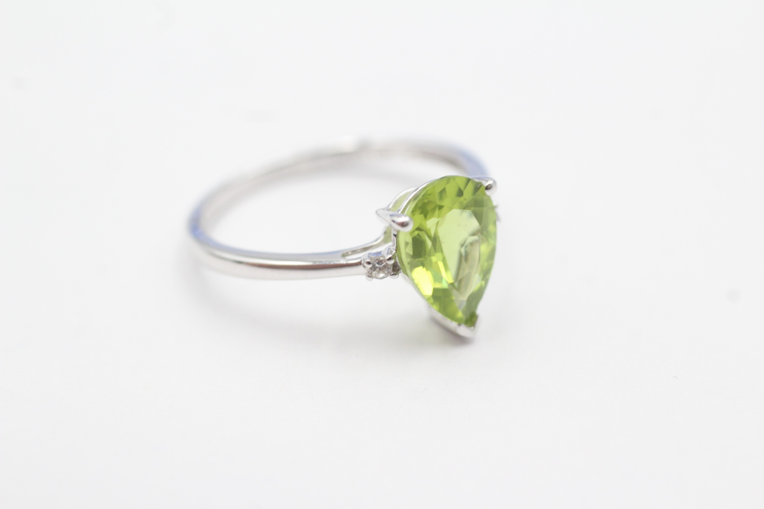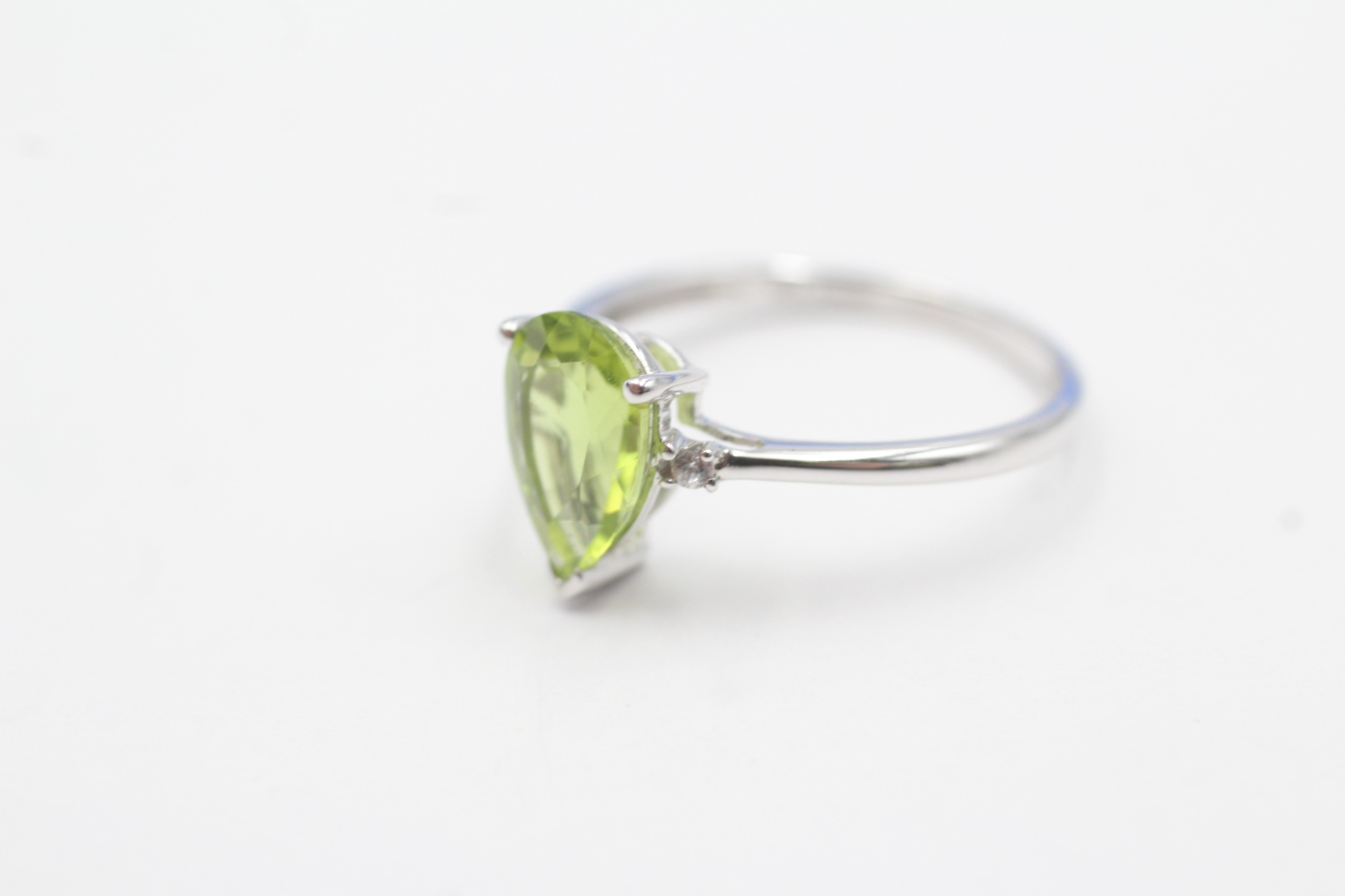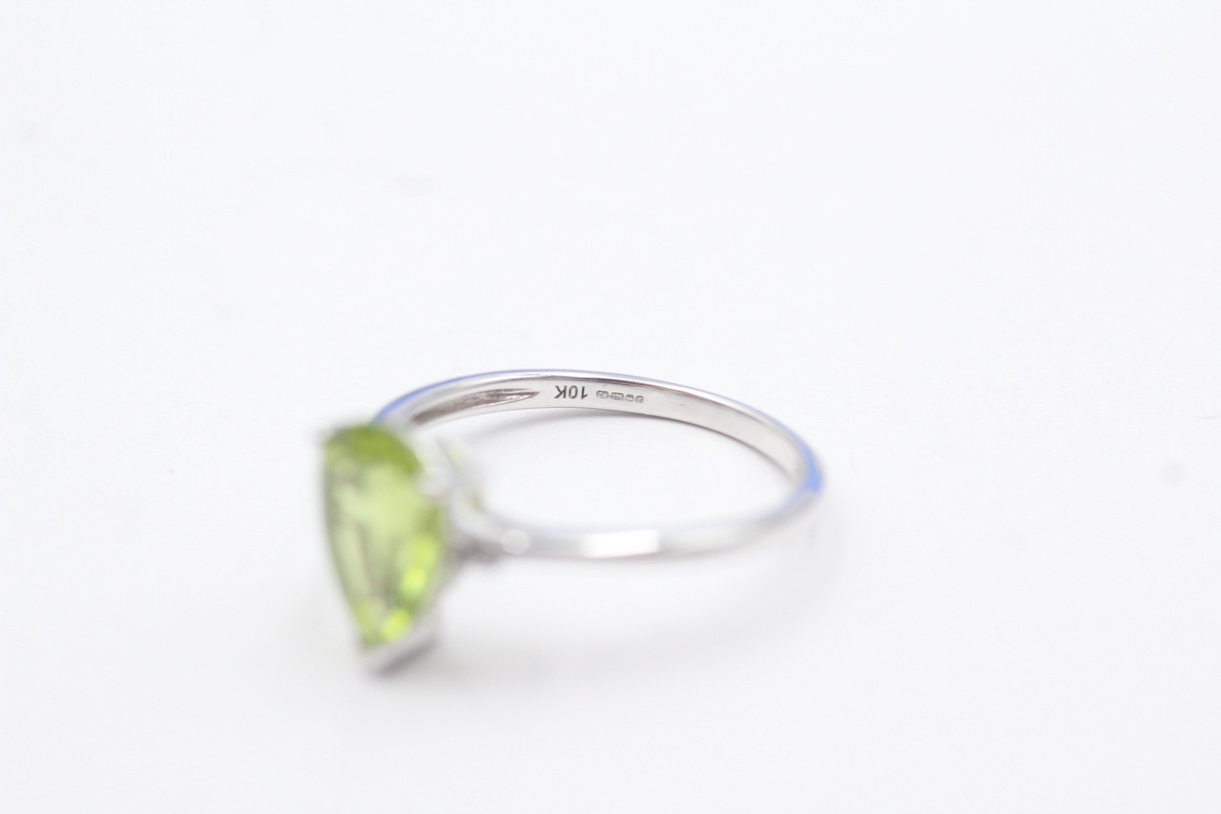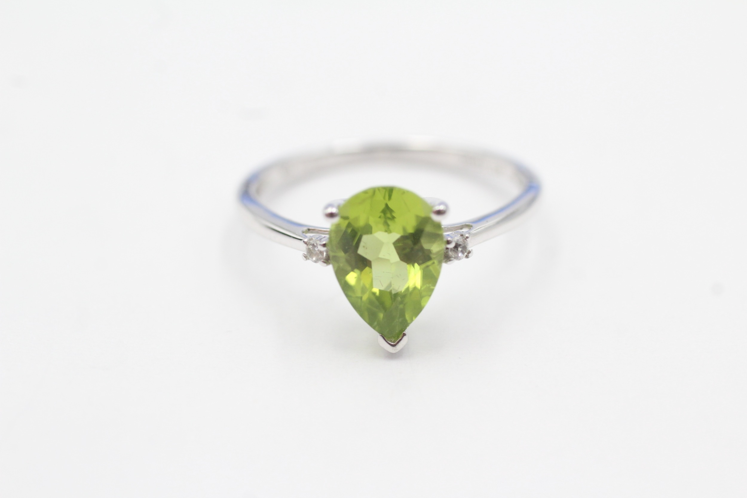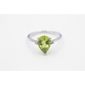 9ct gold pear cut peridot & white gemstone dress ring (1.8g) Size N