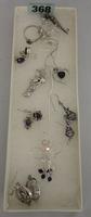 Silver & White Metal Jewellery inc. diamante set Mackintosh style earrings, floral necklace, crown ring etc.