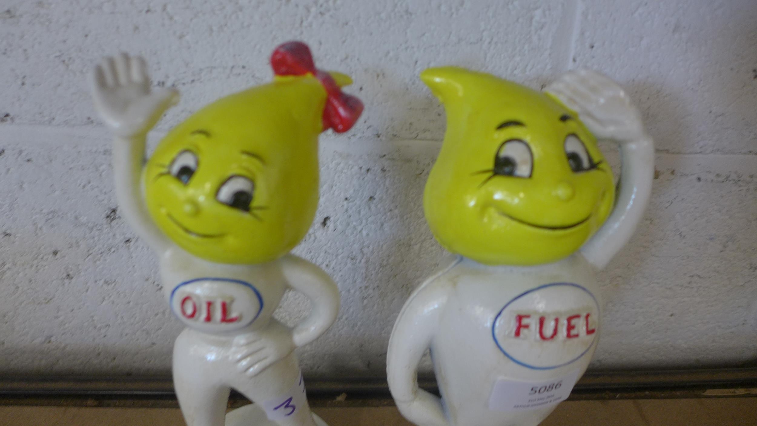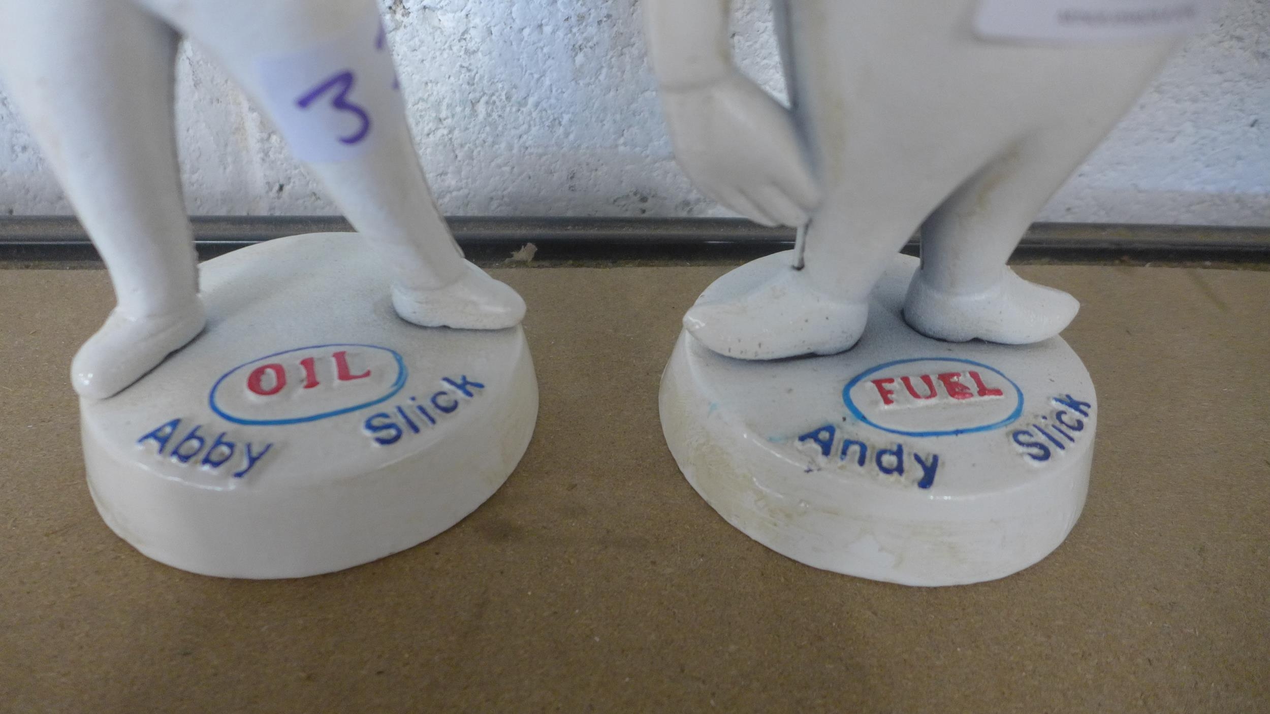 A cast metal Abby Slick oil figure and a cast metal Andy Slick fuel figure *This lot is subject to VAT