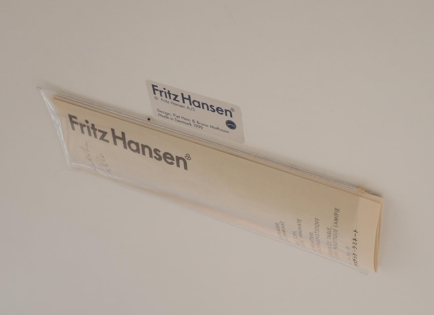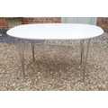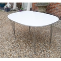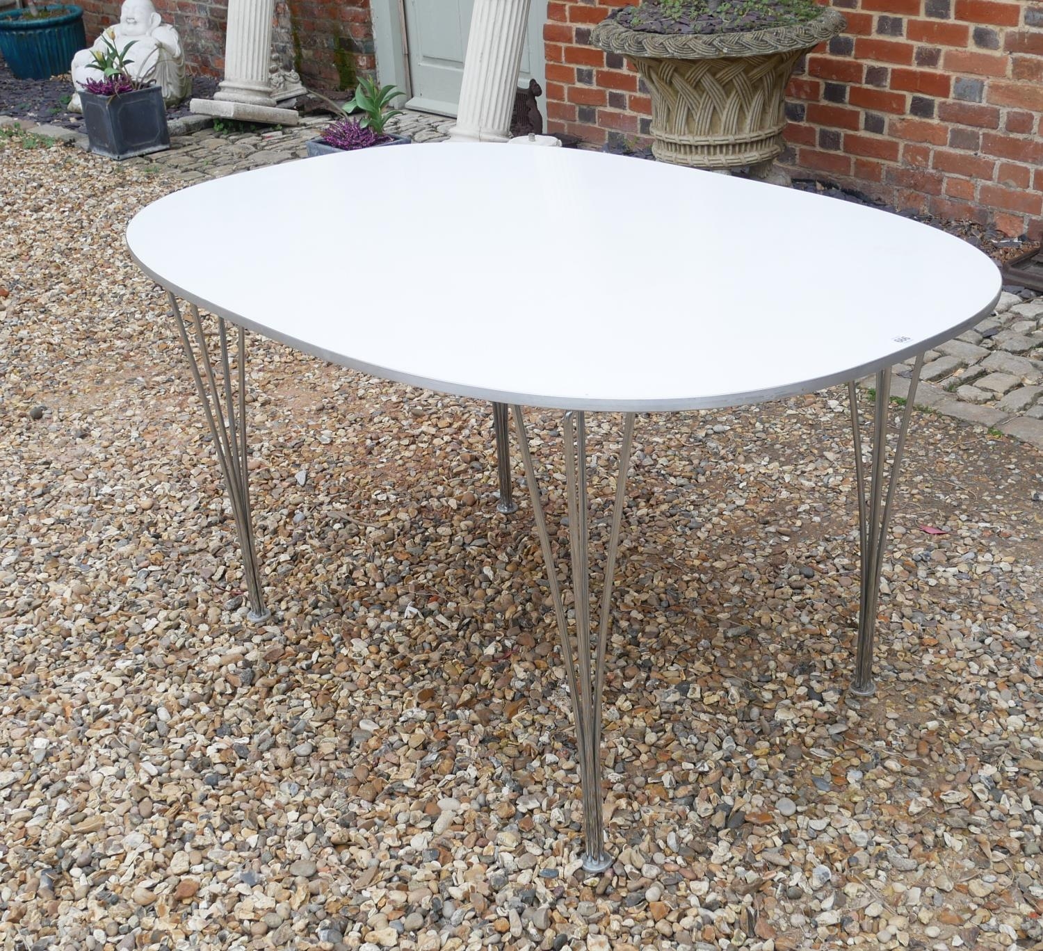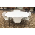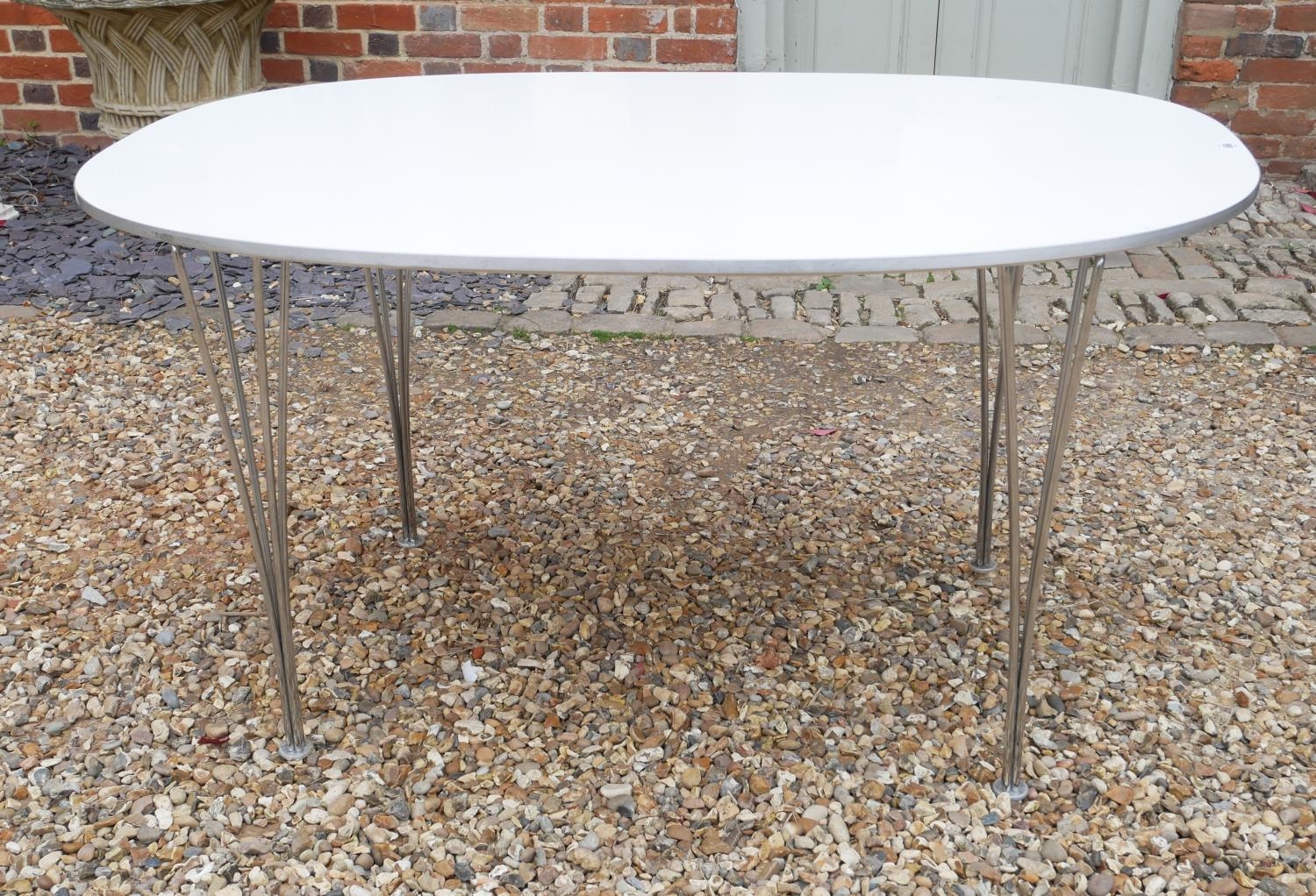 FRITZ HANSEN, DESIGNED BY ARNIE JACOBSEN, AN OVAL WHITE LACQUERED DINING TABLE AND FOUR MATCHING CHAIRS