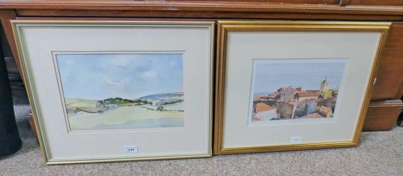 FRAMED WATERCOLOUR LANDSCAPE NEAR STRICHEN SIGNED EDWARD MALCOLM & FRAMED LIMITED EDITION PRINT RAMATRELLE SIGNED GILLO - NO 306 OF 350