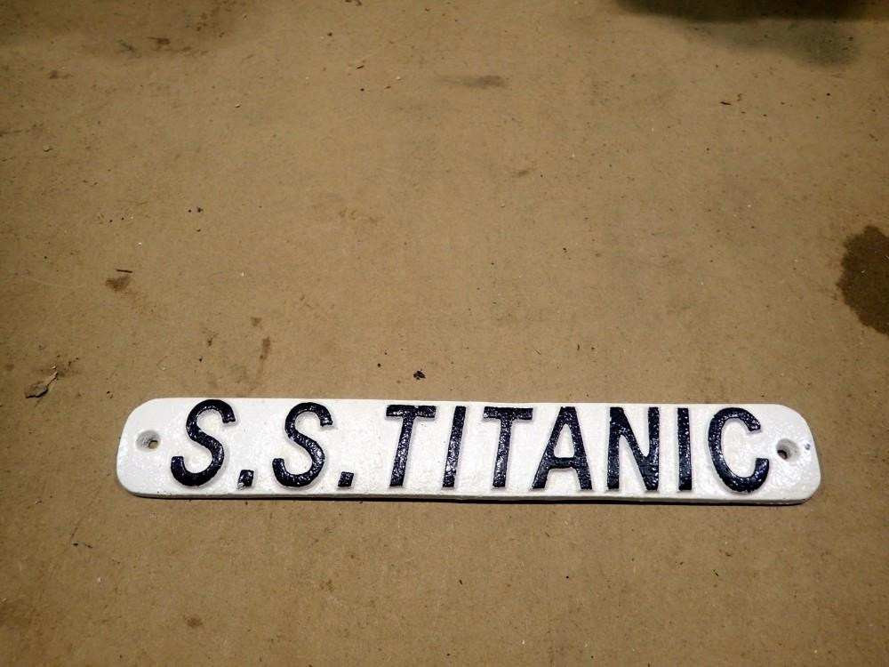 Cast iron SS Titanic sign, L: 29 cm. UK P&P Group 2 (£24+VAT for the first lot and £5+VAT for subsequent lots)