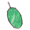 Carved Jade and Diamond 900 Platinum Set Pendant. Measures approx. 4.1 x 2.1cm. This pendant has been tested as 900 platinum. All stones are intact with minimal wear. Weighs in total 4g.