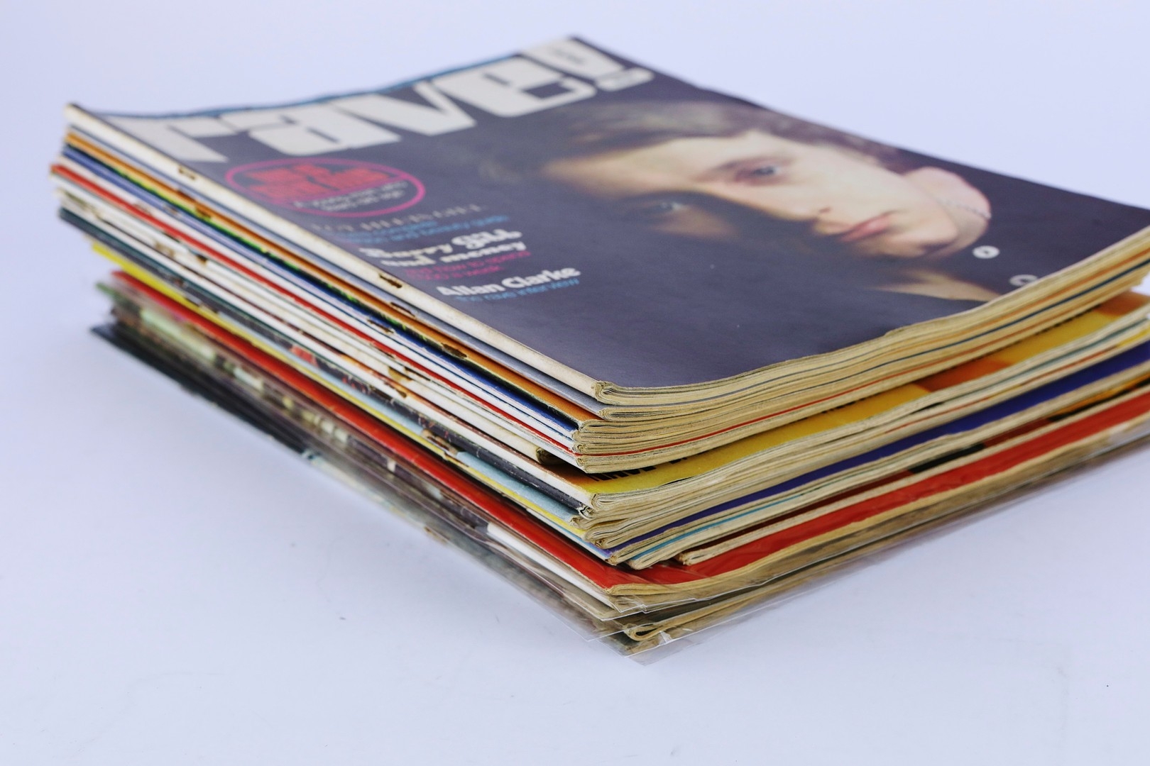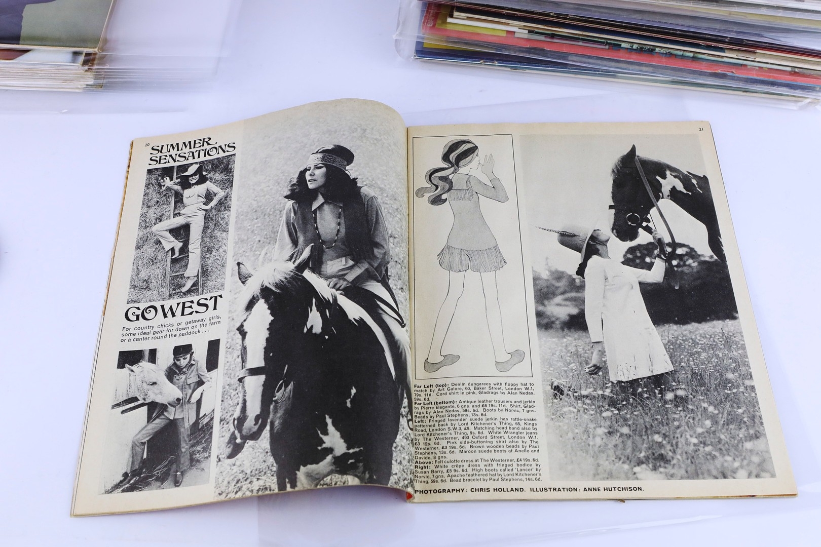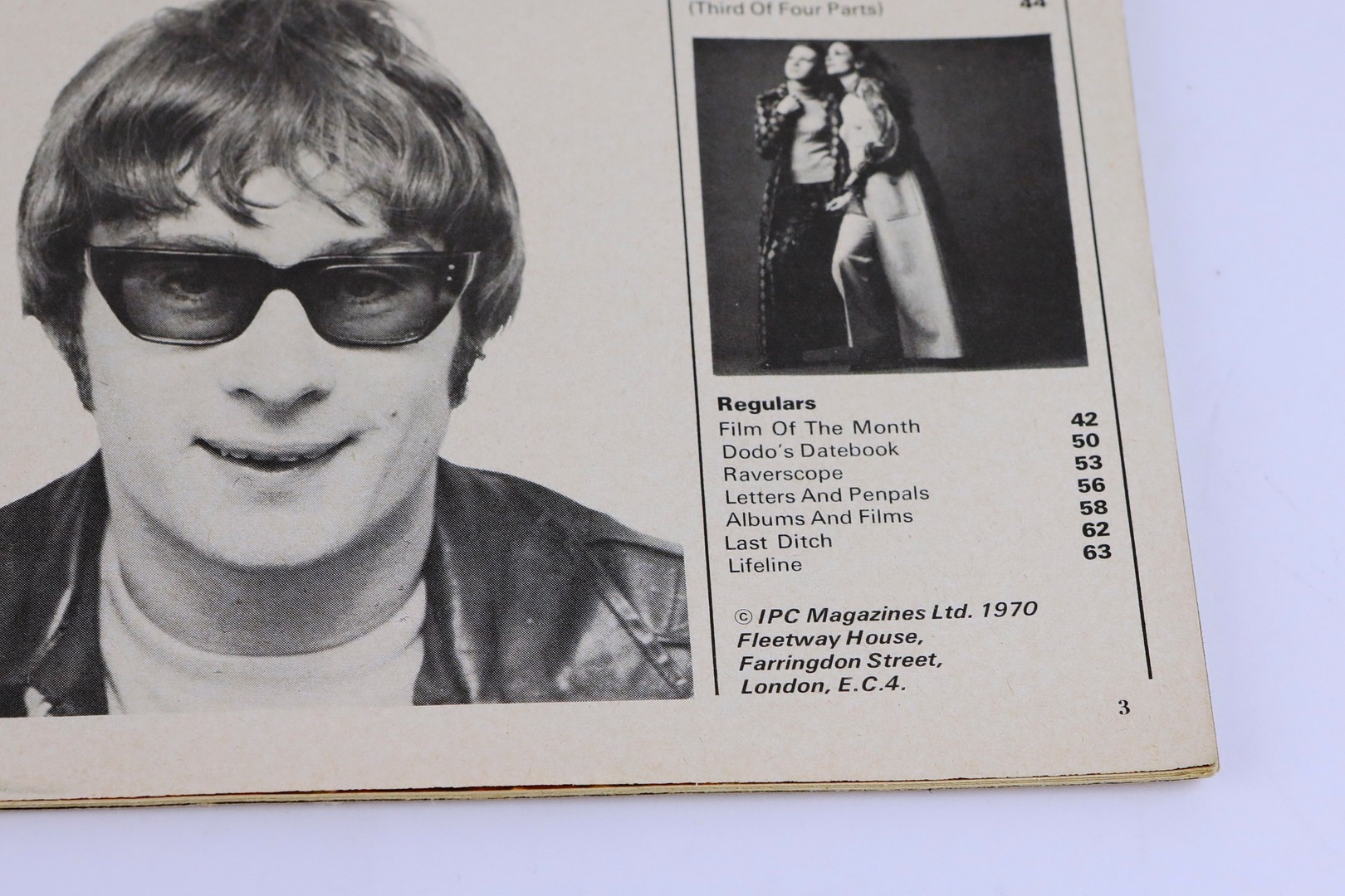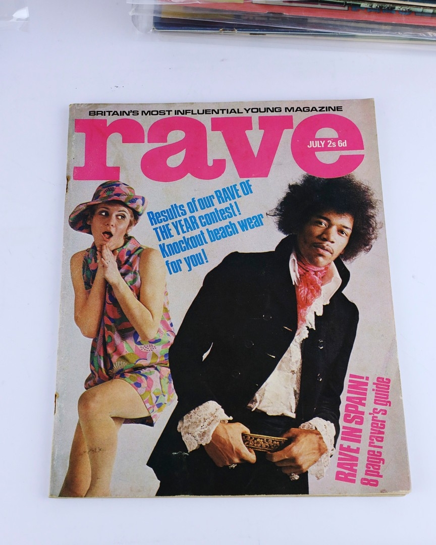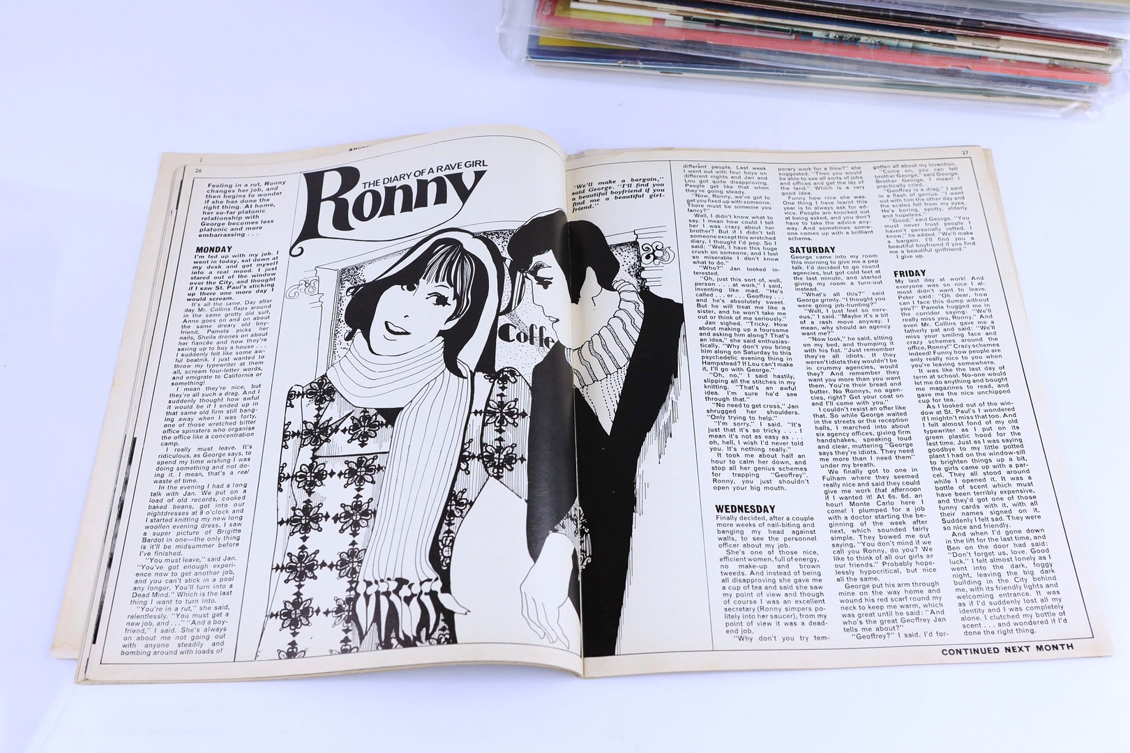 VINTAGE RAVE MAGAZINES, NEAR FULL RUN OF 72 ISSUES, 1964-71. Rave Magazines, 72 issues of the UK's iconic pop magazine published by George Newnes Ltd during the 1960s. The collection contains issues dating from 1964-1971, with cover features by The Beatles, Mick Jagger, Twiggy, Cilla Black, Jimi Hendrix, Bob Dylan, John Voight, Marianne Faithfull, and Steve Ellis, among others. Most notably, the collection includes Issue No. 1 from 1964, featuring the Beatles and 007.