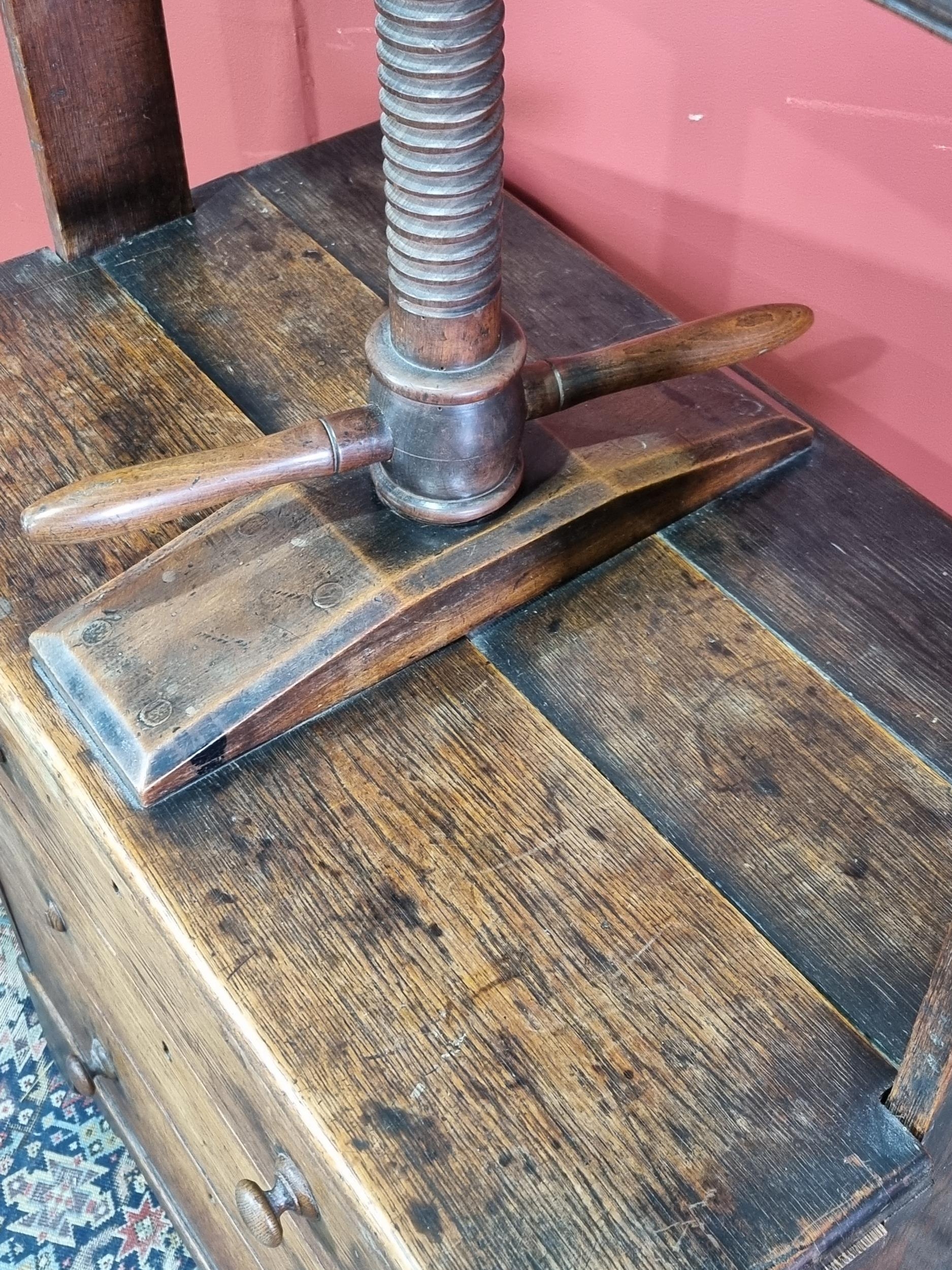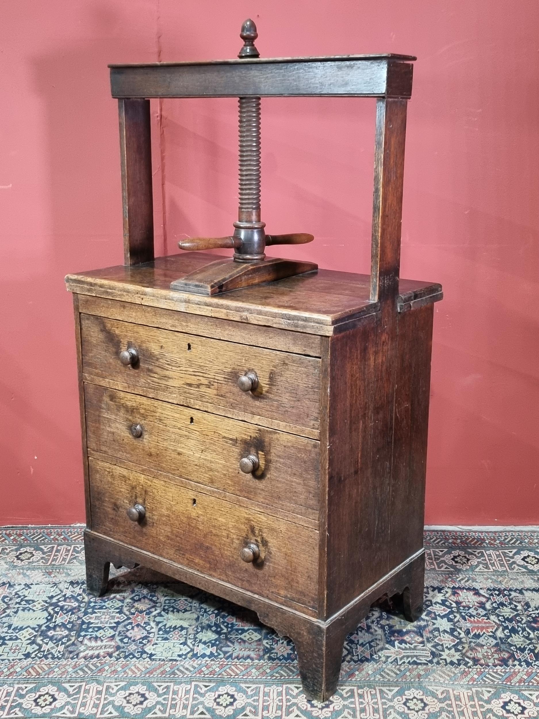 A 19th Century oak Book Press Chest with three long drawers, raised on shaped bracket supports, 4ft 6in High x 2ft 8in Wide x 19in Deep. (R4).