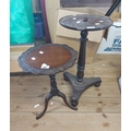Two 19th Century pedestal wine tables comprising one with rotating top and trefoil base, the other with carved decoration and tripod base