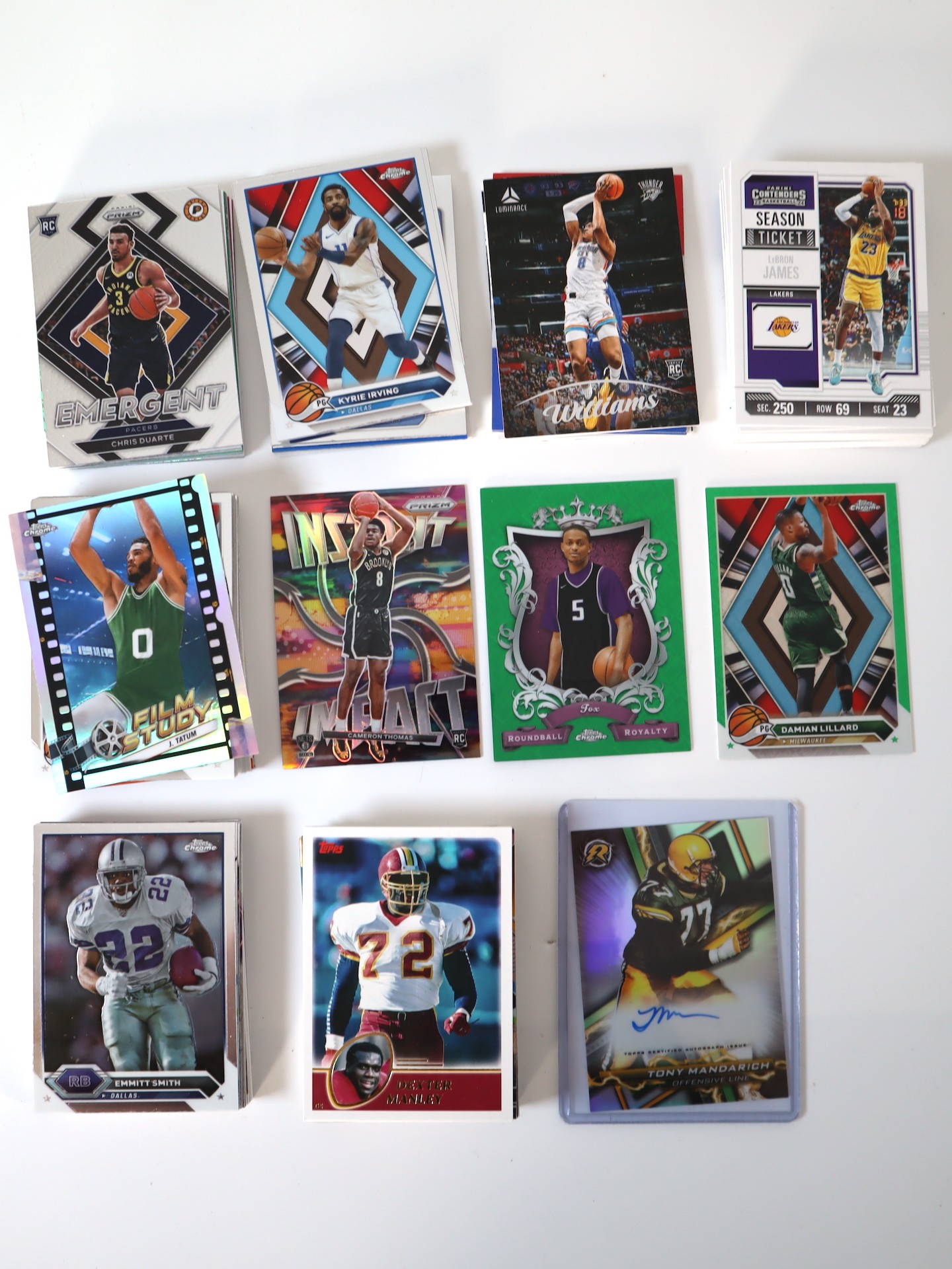 Topps Chrome & Panini Prizm NBA & NFL Sports Cards including Tony Mandarich Resurgence Signature Card