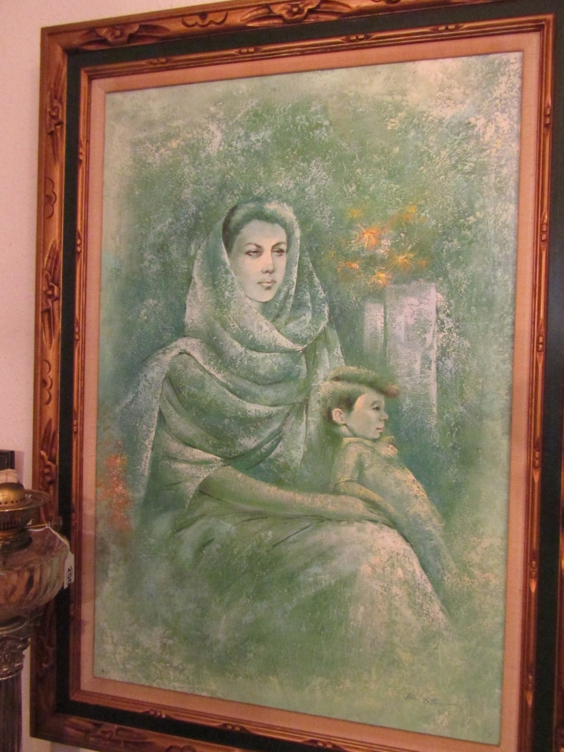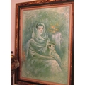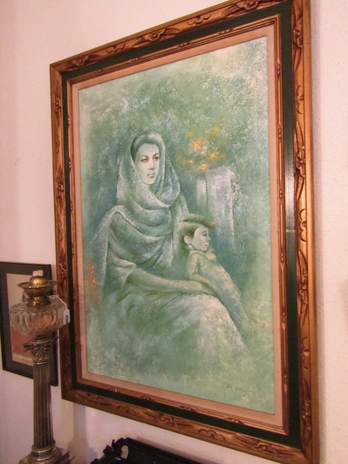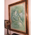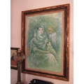 Vintage School Mother and Child Oil on Board Approximately 40 Inches High x 30 Inches Wide