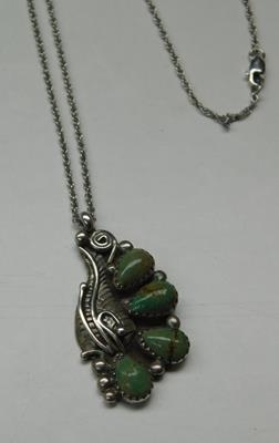 Rare genuine vintage silver Ella Cowboy Navavo green turquoise pendant on silver chain