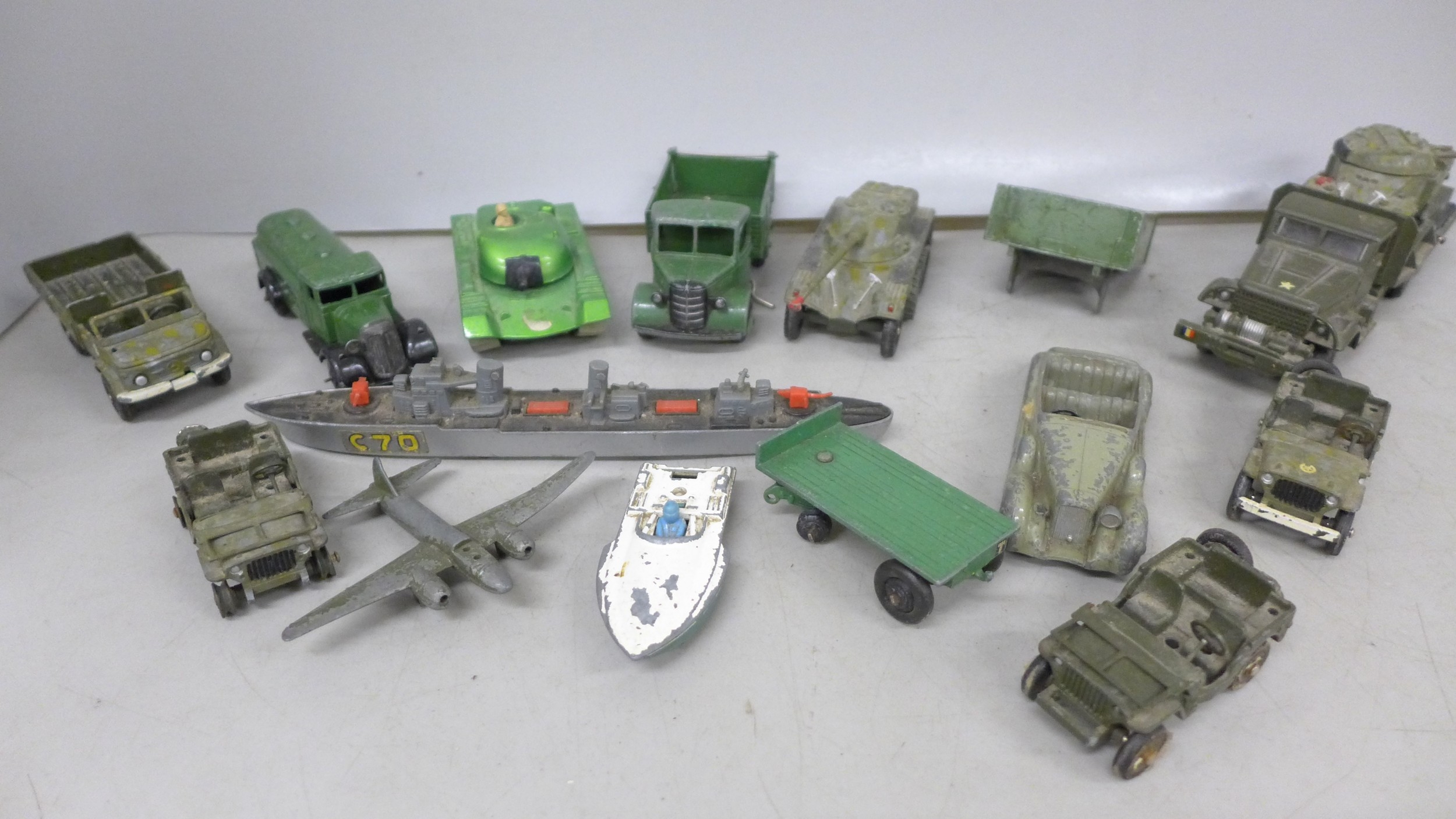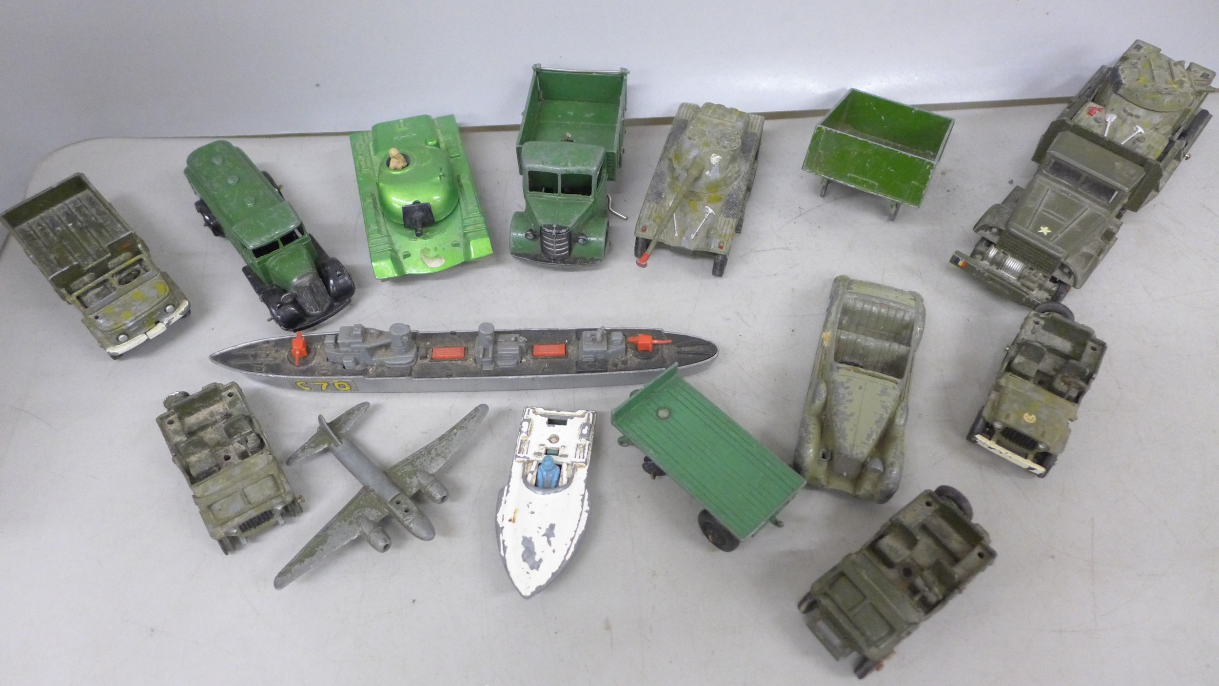 A collection of die-cast model vehicles, including Dinky Toys and Matchbox