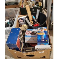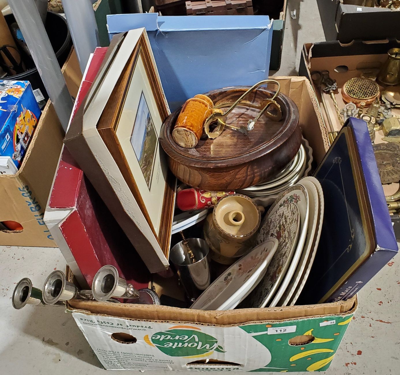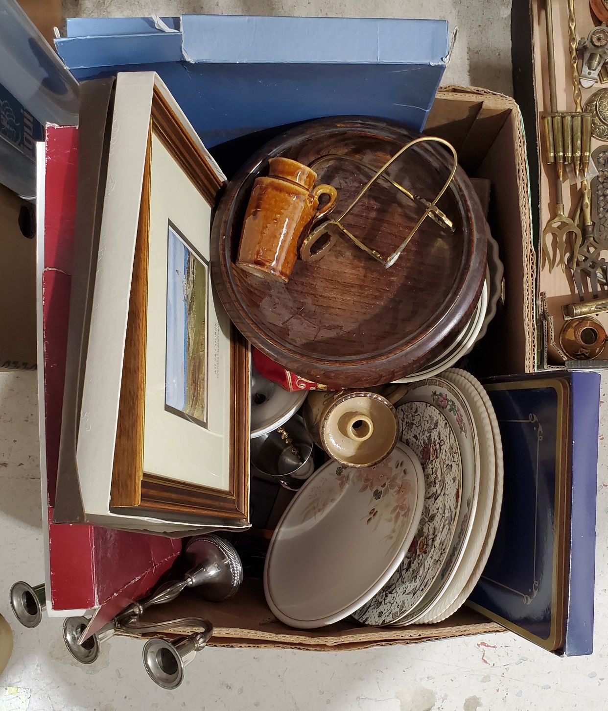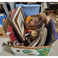 A box of assorted including a wooden fruit bowl. No in-house shipping. Please arrange collection or your own packer and shipper.