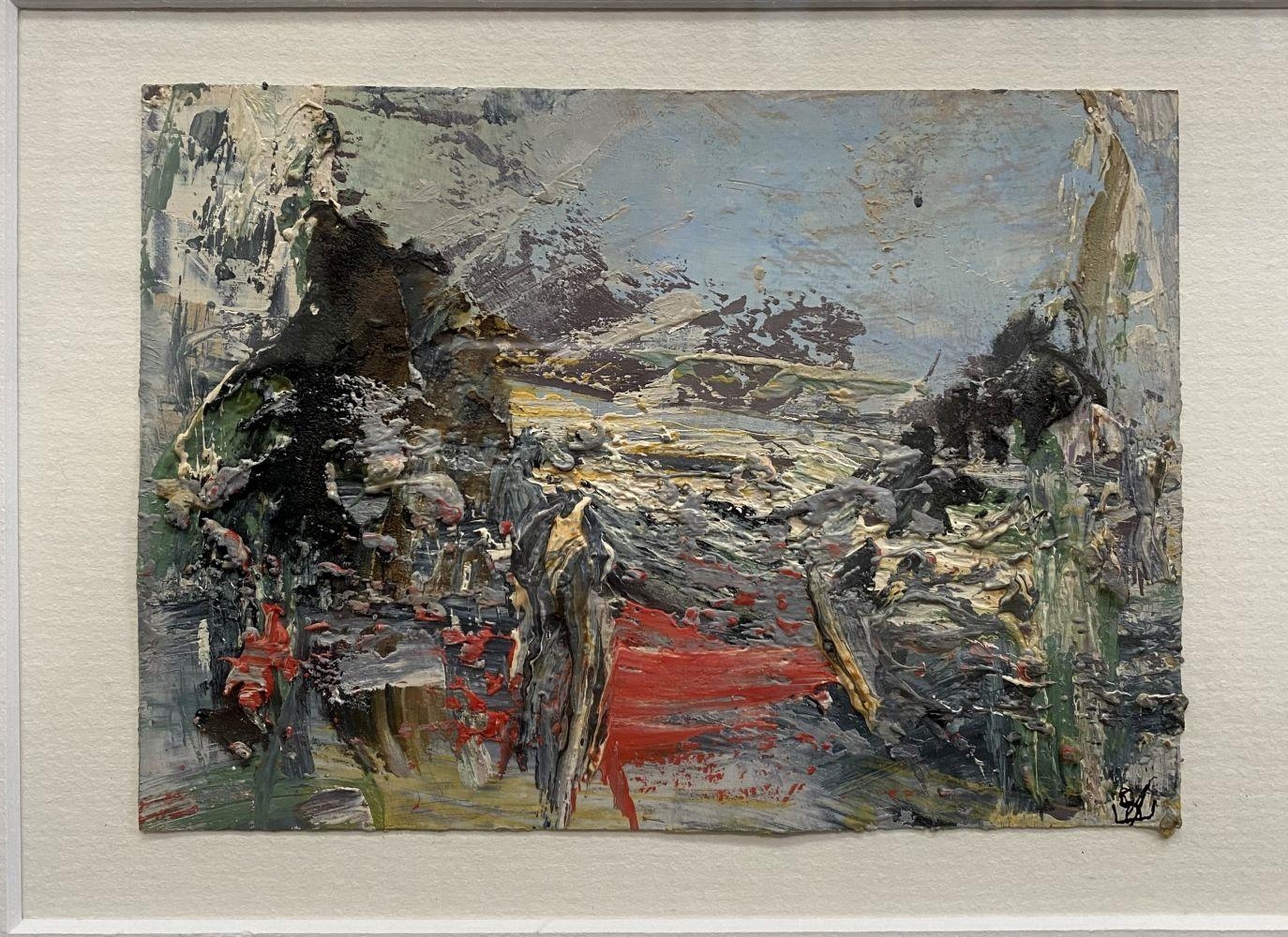 JOHN KINGERLEE, (IRISH, B. 1936), LANDSCAPE – SKIB, mixed media on card, signed with artist’s monogram verso and dated 2015. Dimensions: 6 x 4 inches paintings, 17 x 12 inches frame.