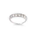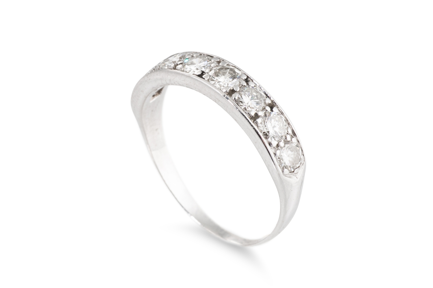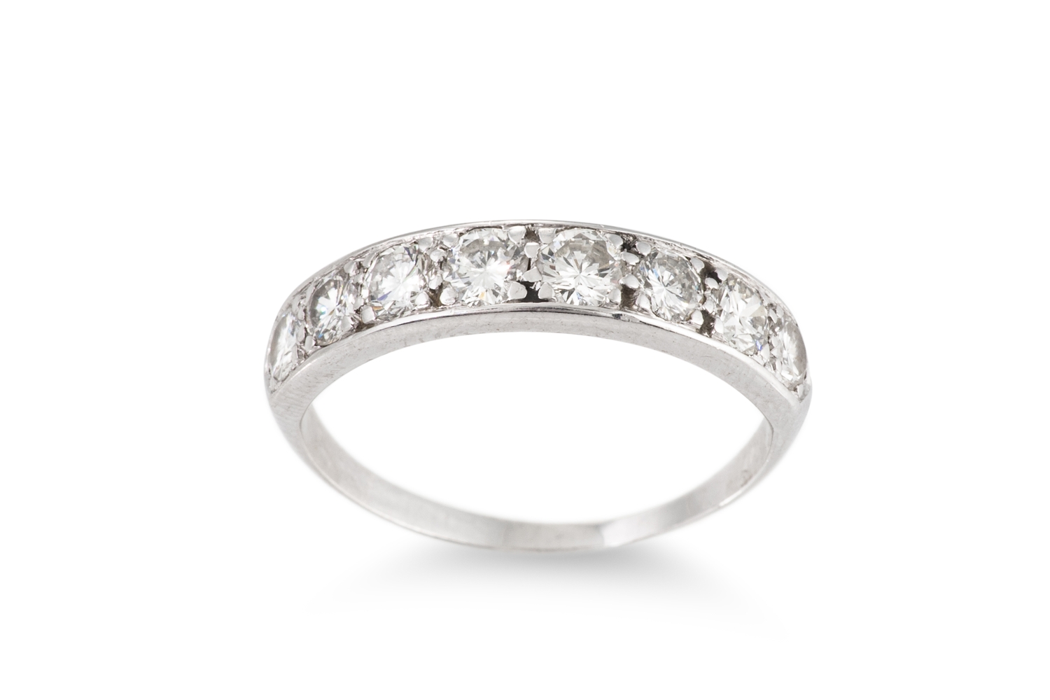 AN EIGHT STONE DIAMOND RING, mounted in 18ct white gold, size R. Estimated: weight of diamonds: 1.00 ct