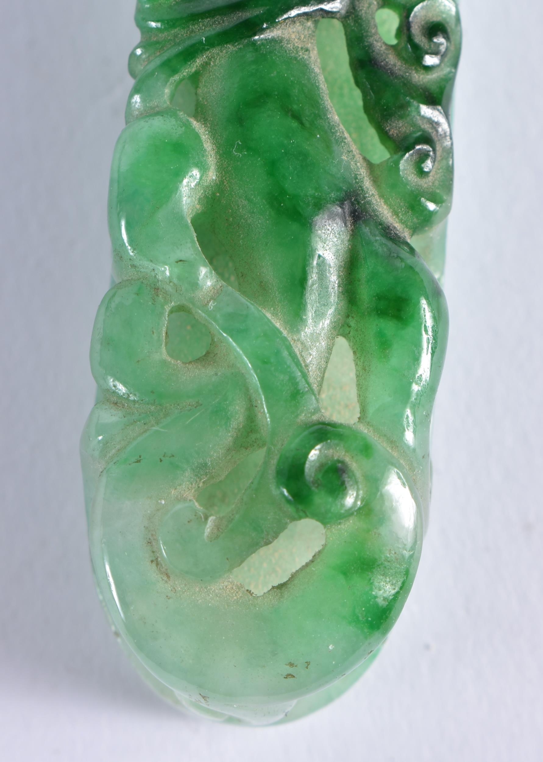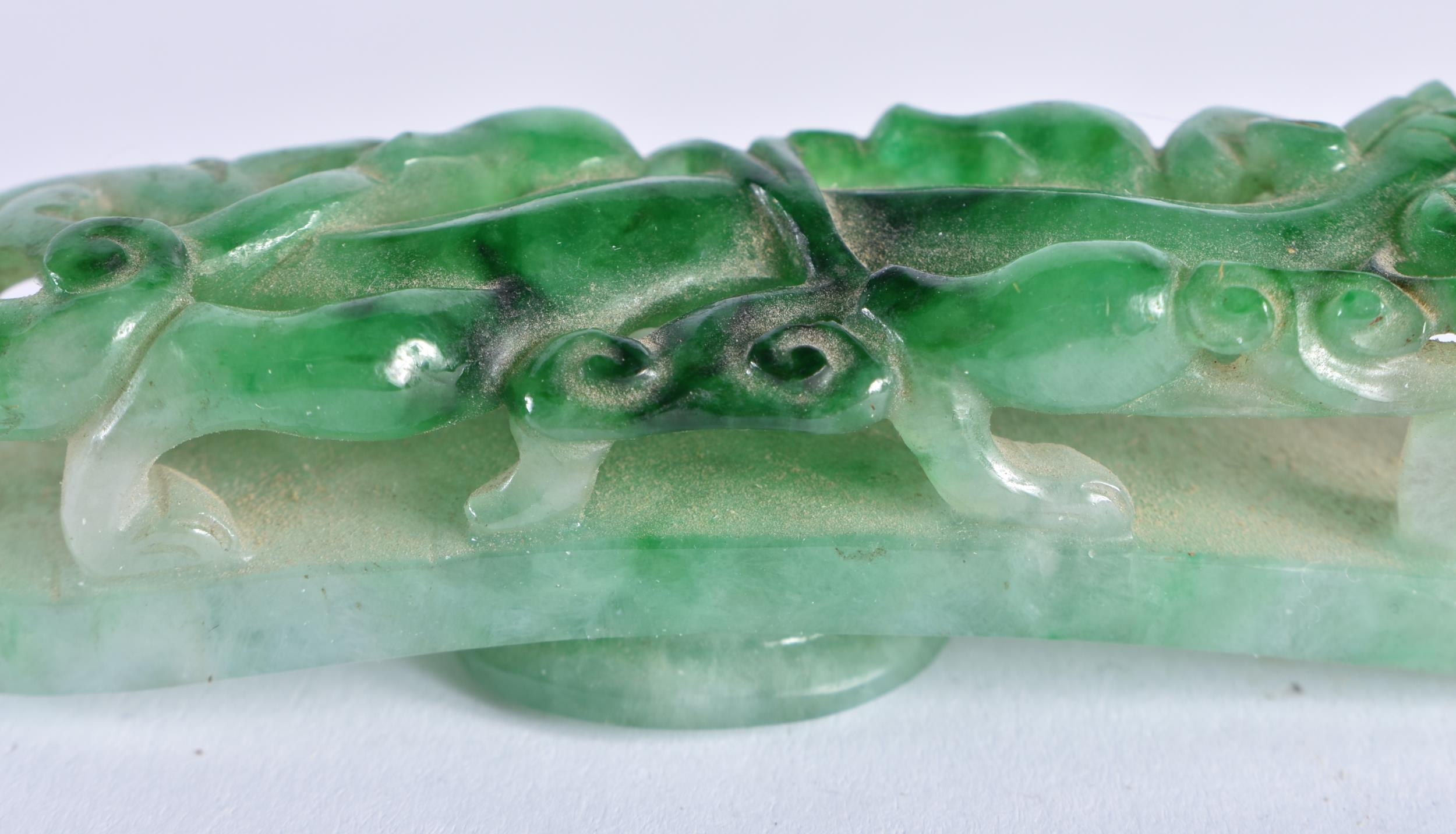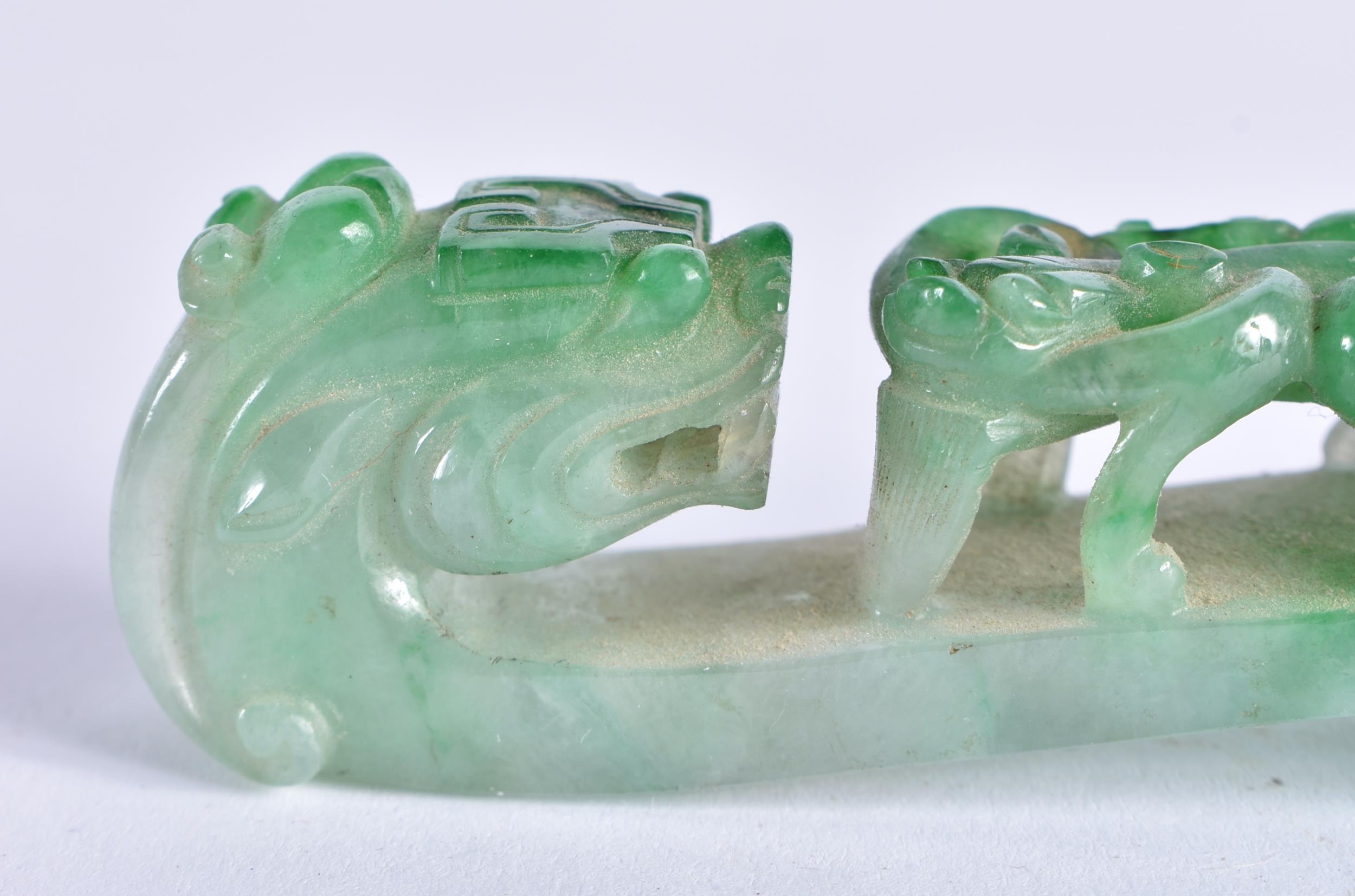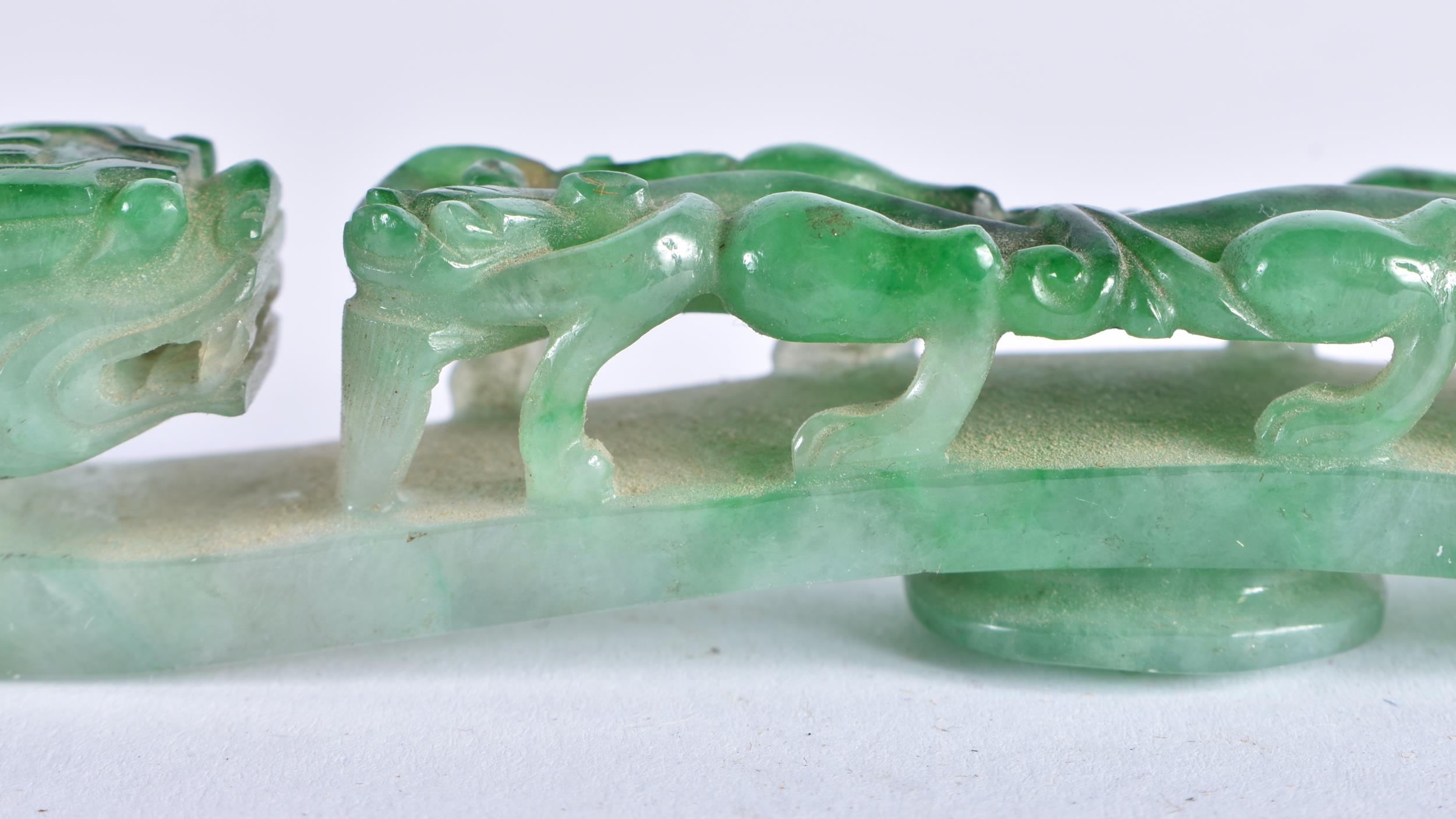 A FINE 19TH CENTURY CHINESE CARVED JADEITE BELT HOOK Qing. 10 cm long.
