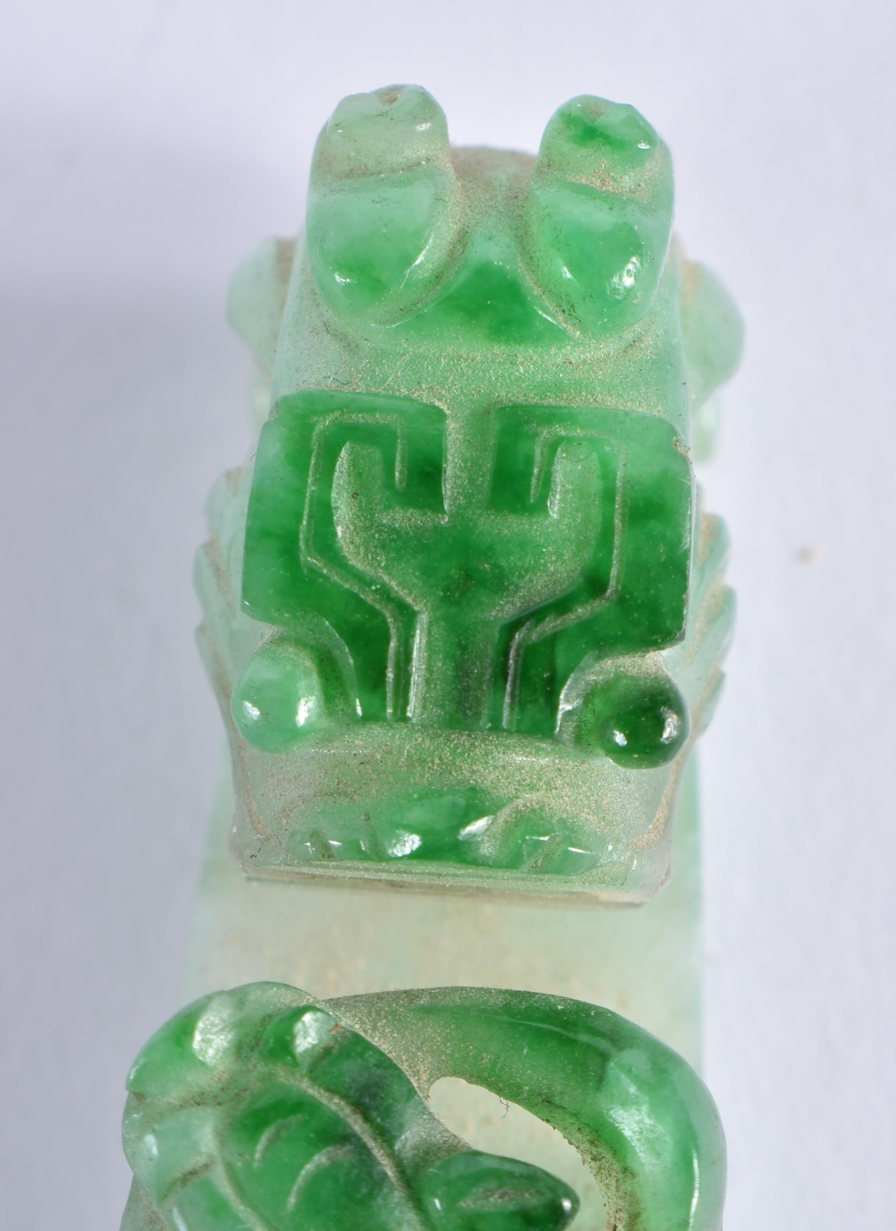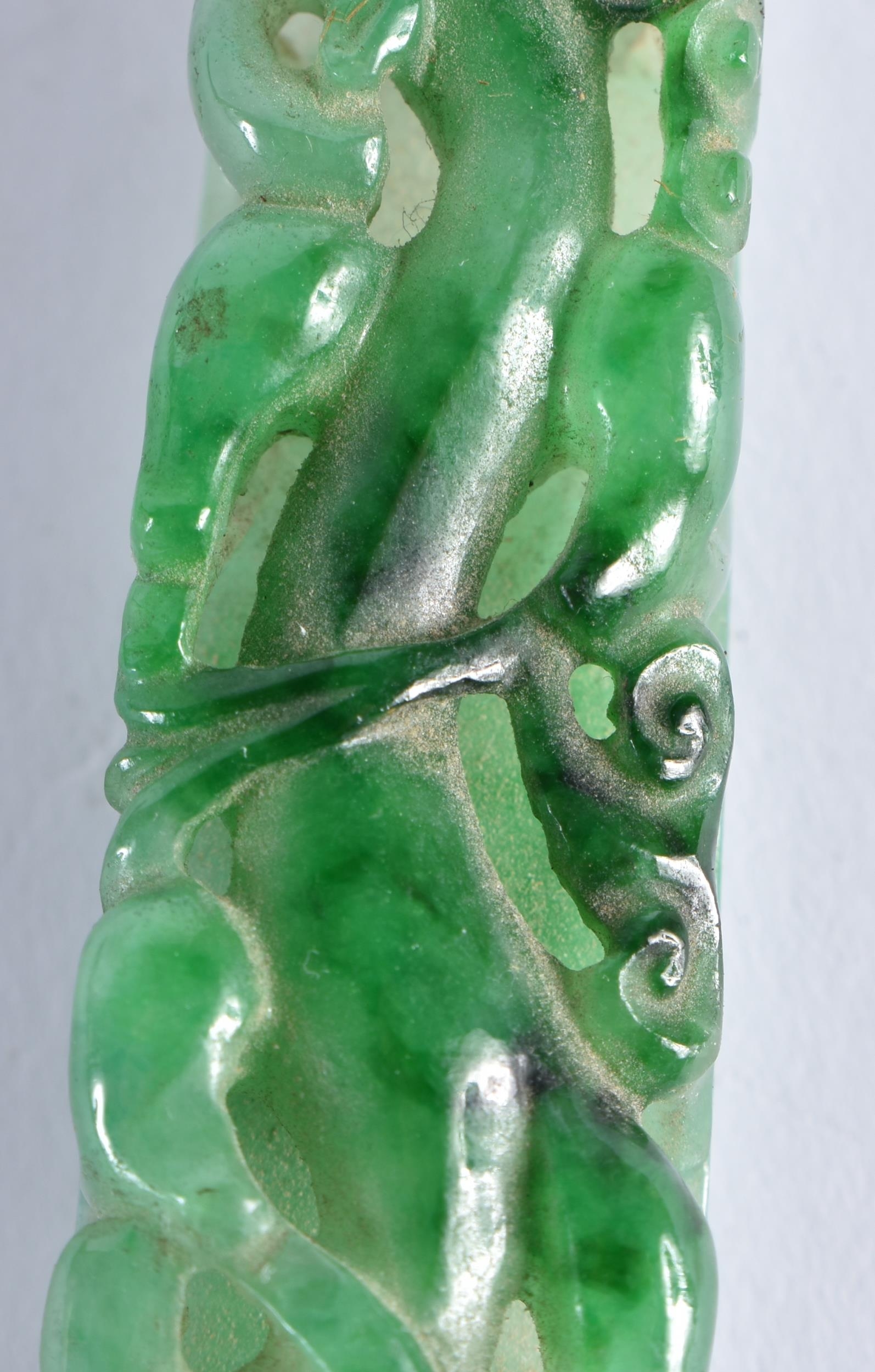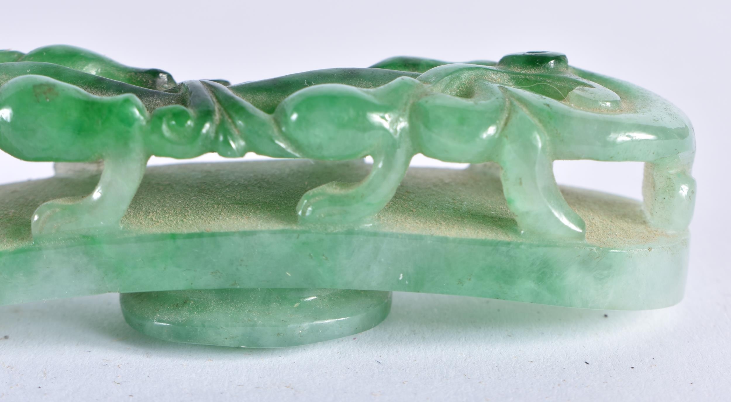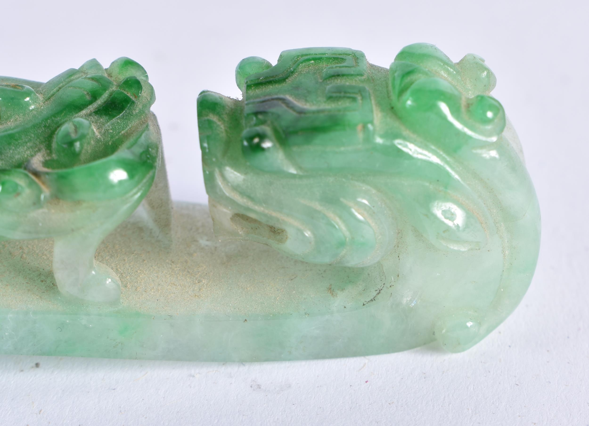 A FINE 19TH CENTURY CHINESE CARVED JADEITE BELT HOOK Qing. 10 cm long.