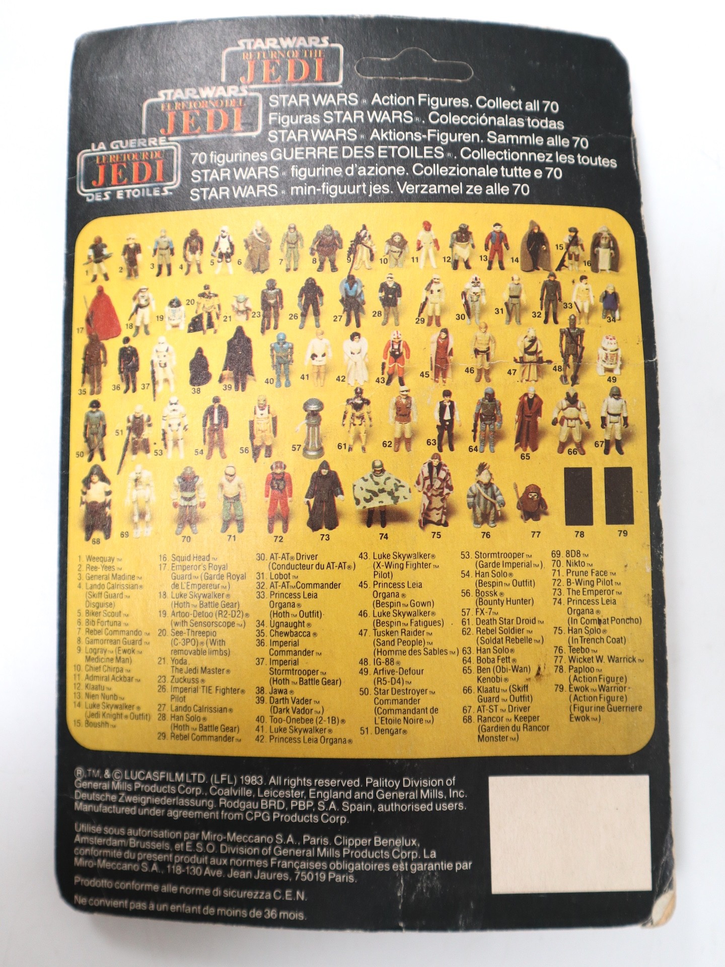Kenner Star Wars 1983 Return of the Jedi Snaggletooth 3.75" Action Figure Tri Logo 70 A Hybrid card back un-punched - Sealed