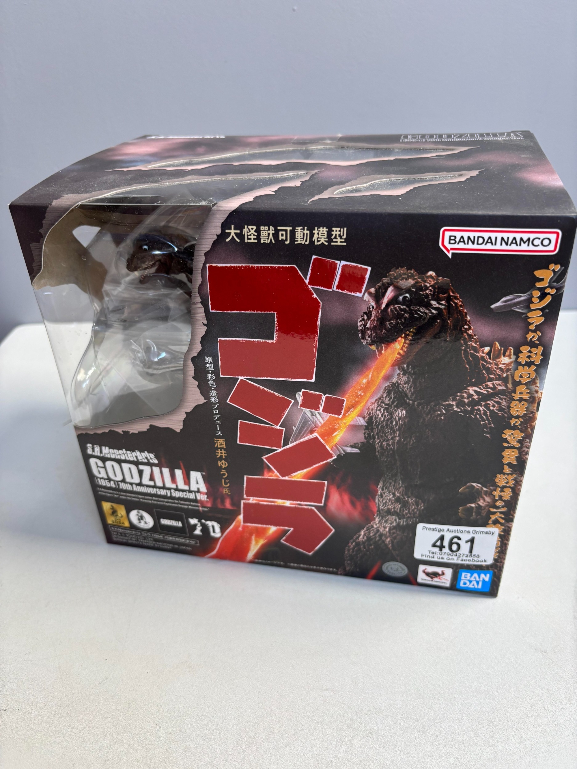 BAN DAI S.H MONSTERS ART GODZILLA 1954 70TH ANNIVERSARY SPECIAL VERSION NEWS SEALED IN THE BOX (THERE IS A RIP IN THE SIDE OF THE BOX)