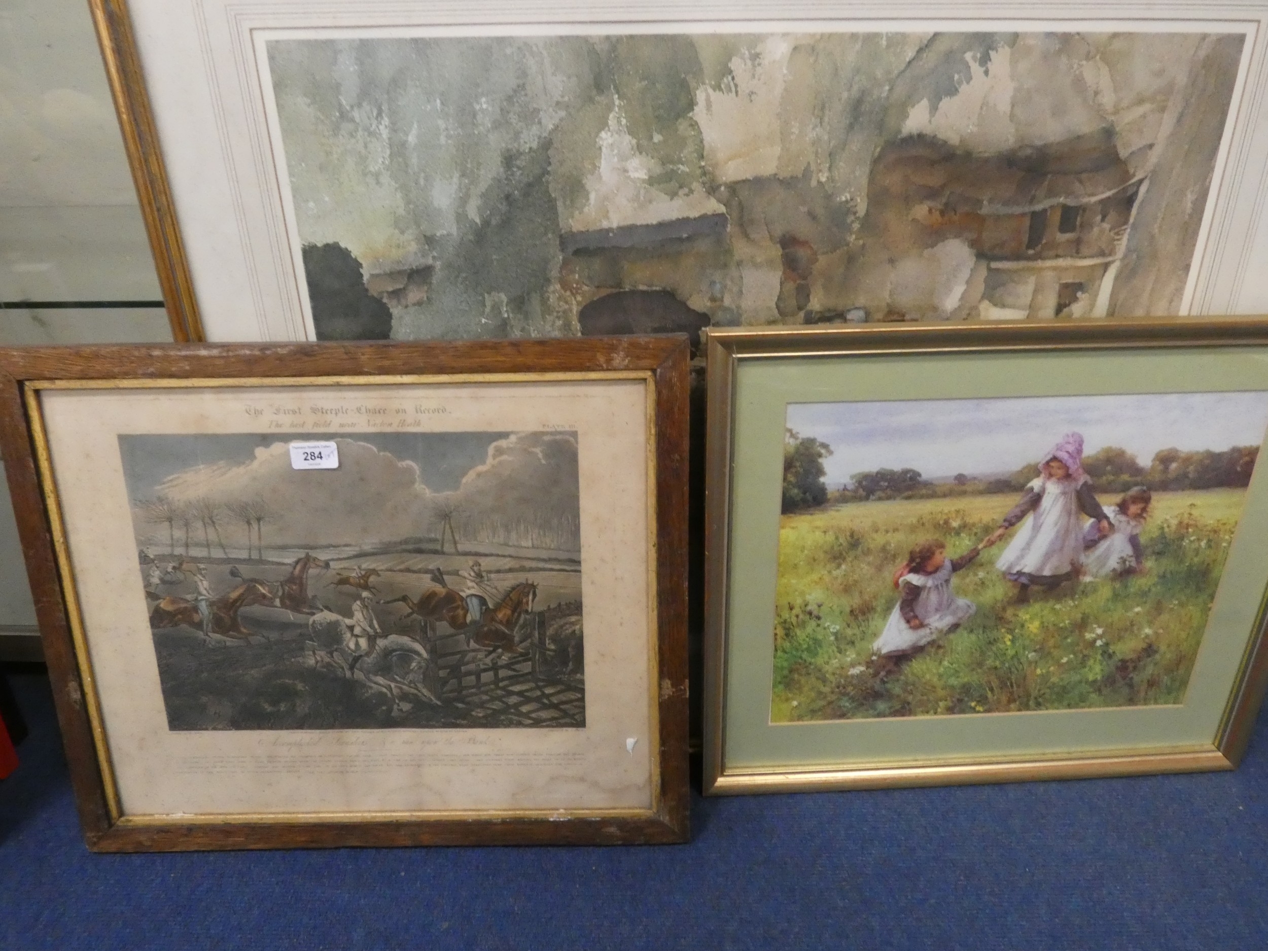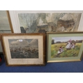 Group of miscellaneous prints and pictures to include Sturgeon print, Victorian sporting print, photographs of people in military dress etc.