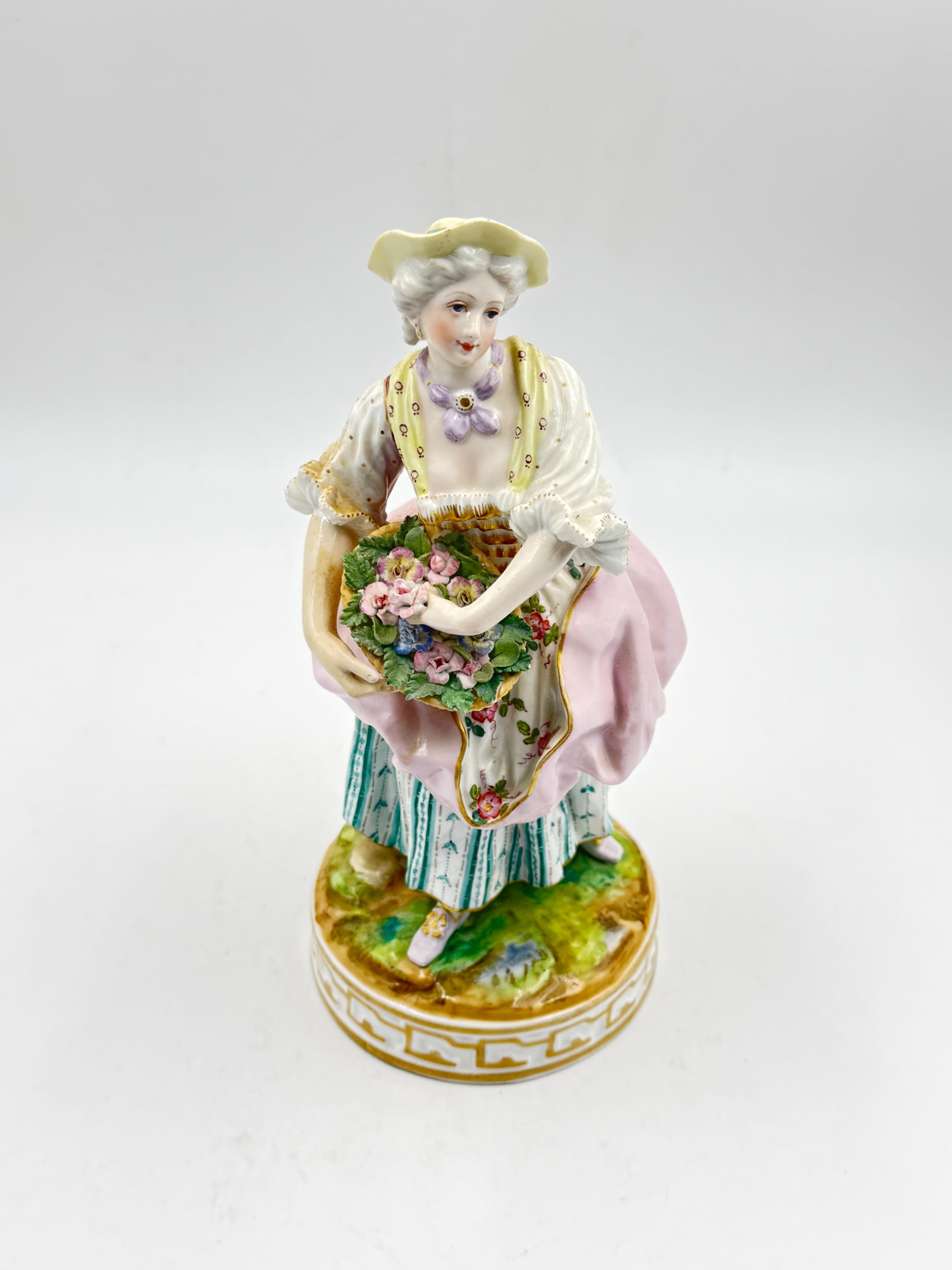 A 19th century Charles Levy & Co. Paris France hand painted porcelain figurine of a lady with flower basket - approx. 26cm high