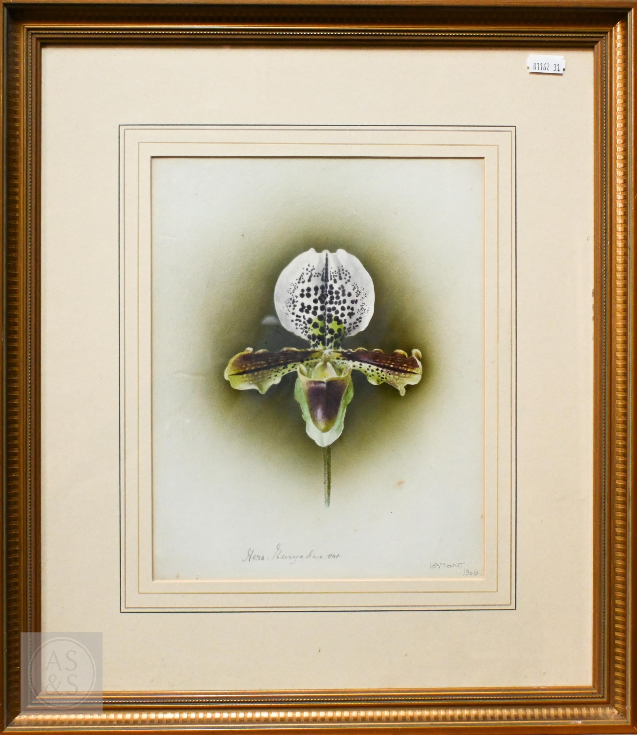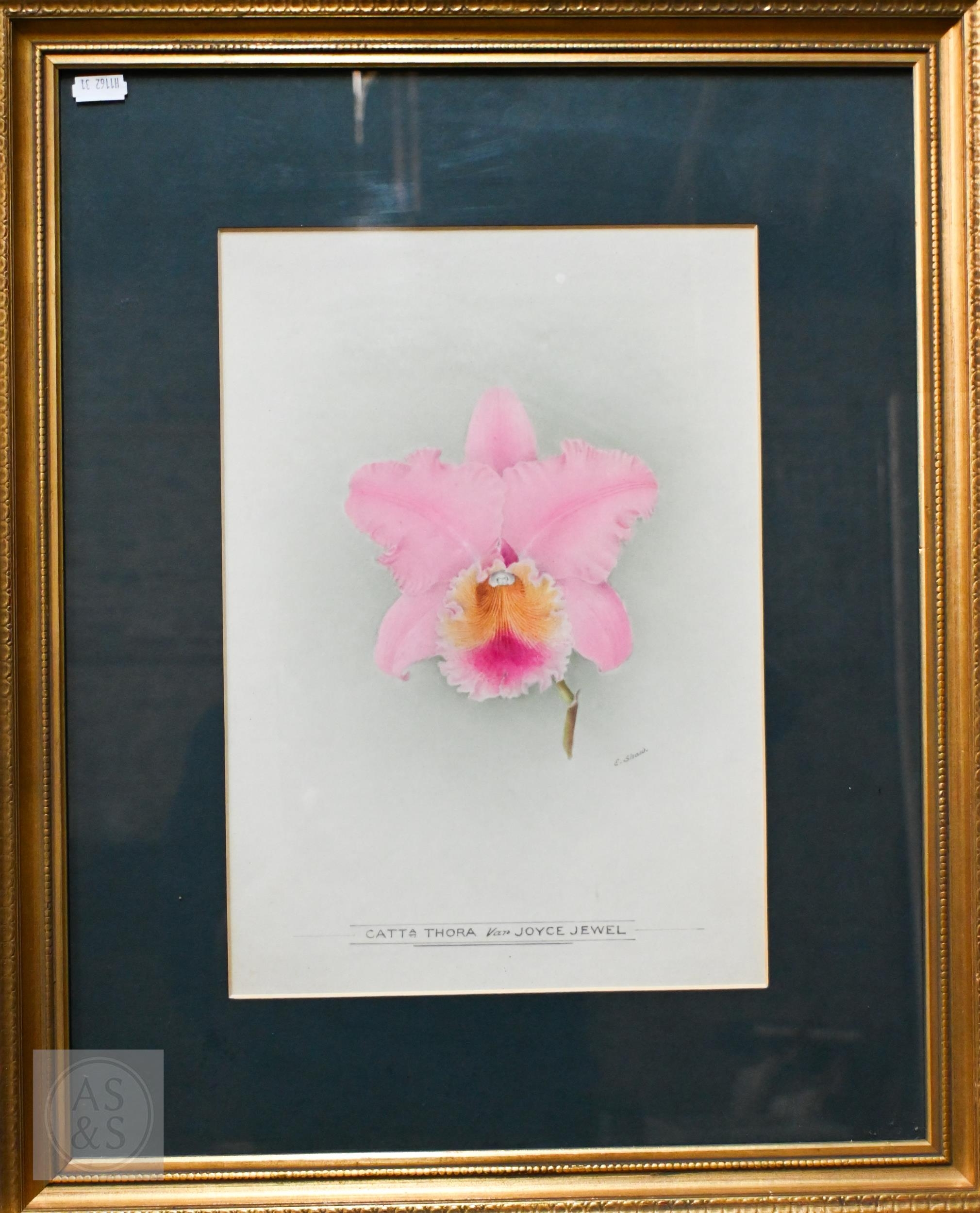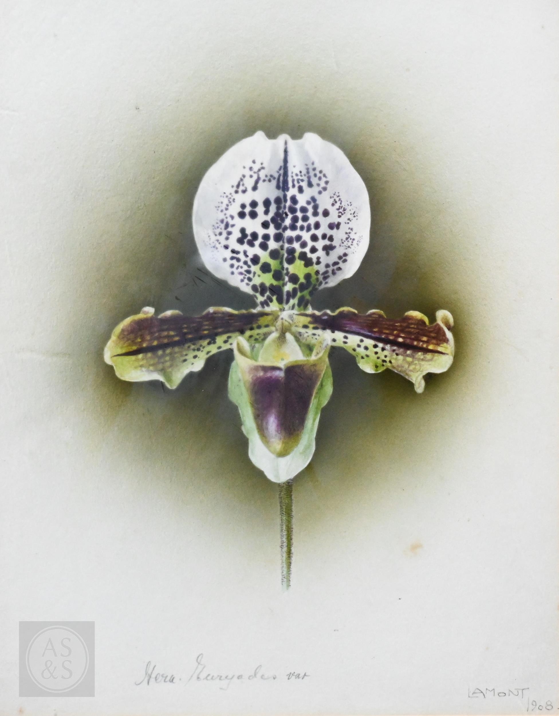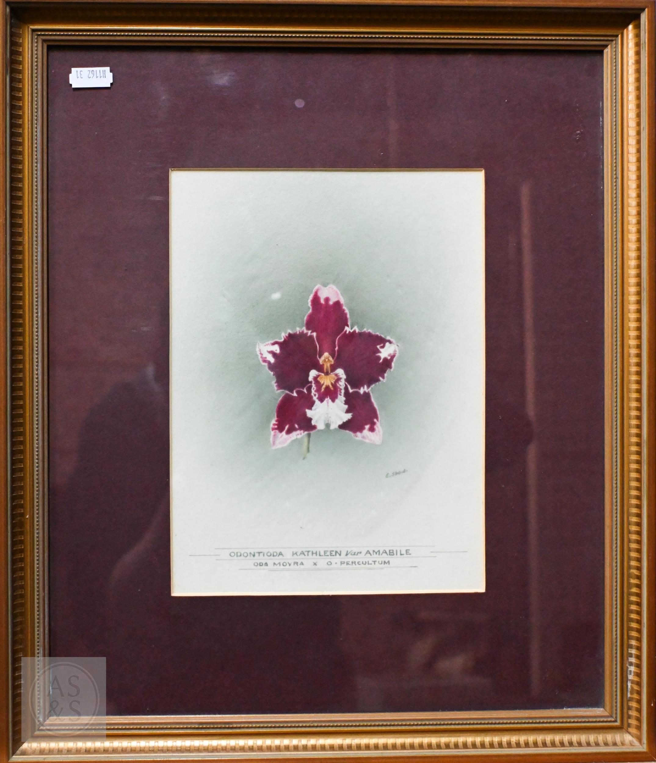 E Shaw - Two botanical RHS watercolour studies of orchids, signed, 34 x 24 cm and 24 x 18 cm to/w La Mont - a watercolour orchid study, 27 x 21 cm (3)