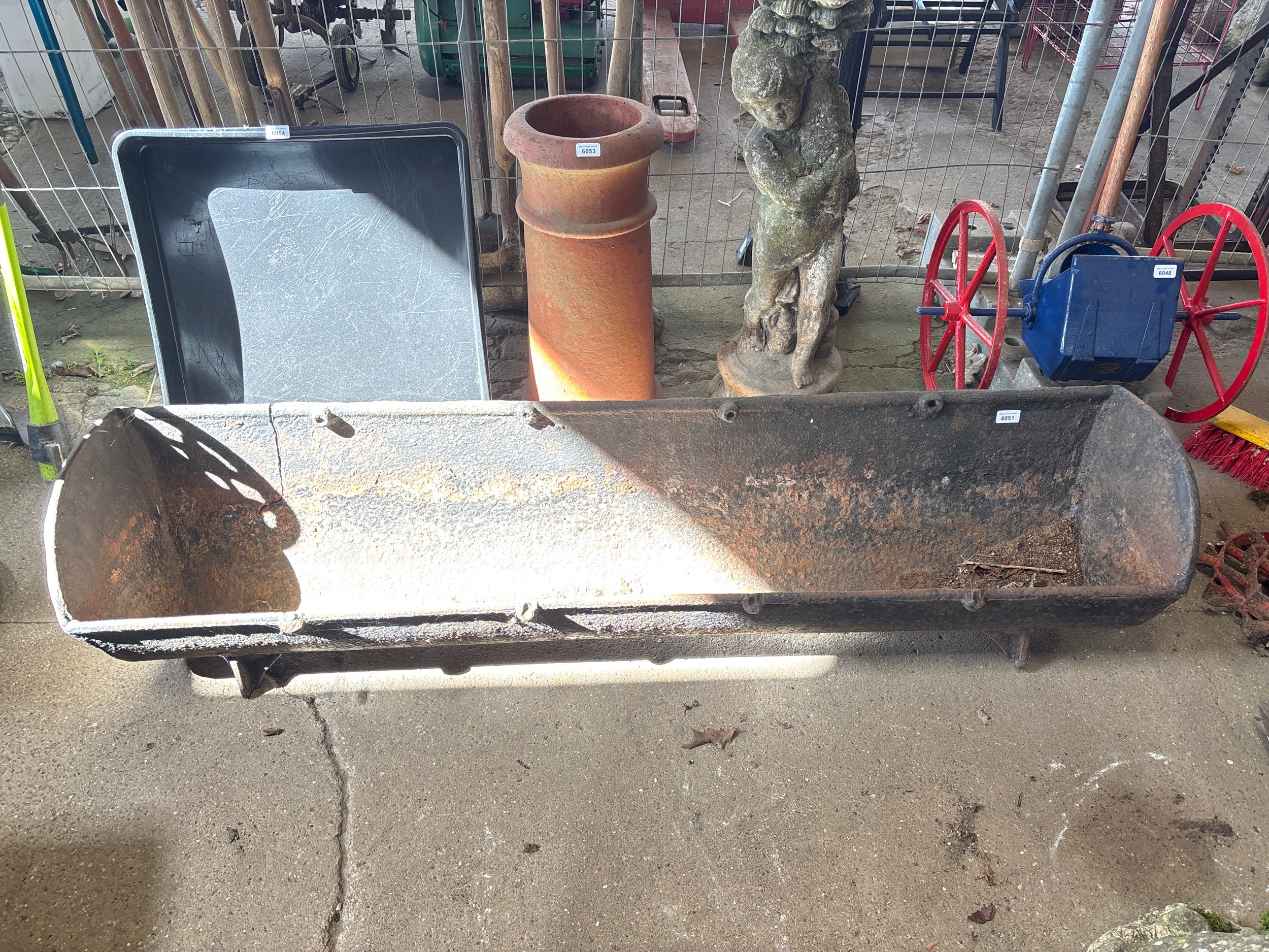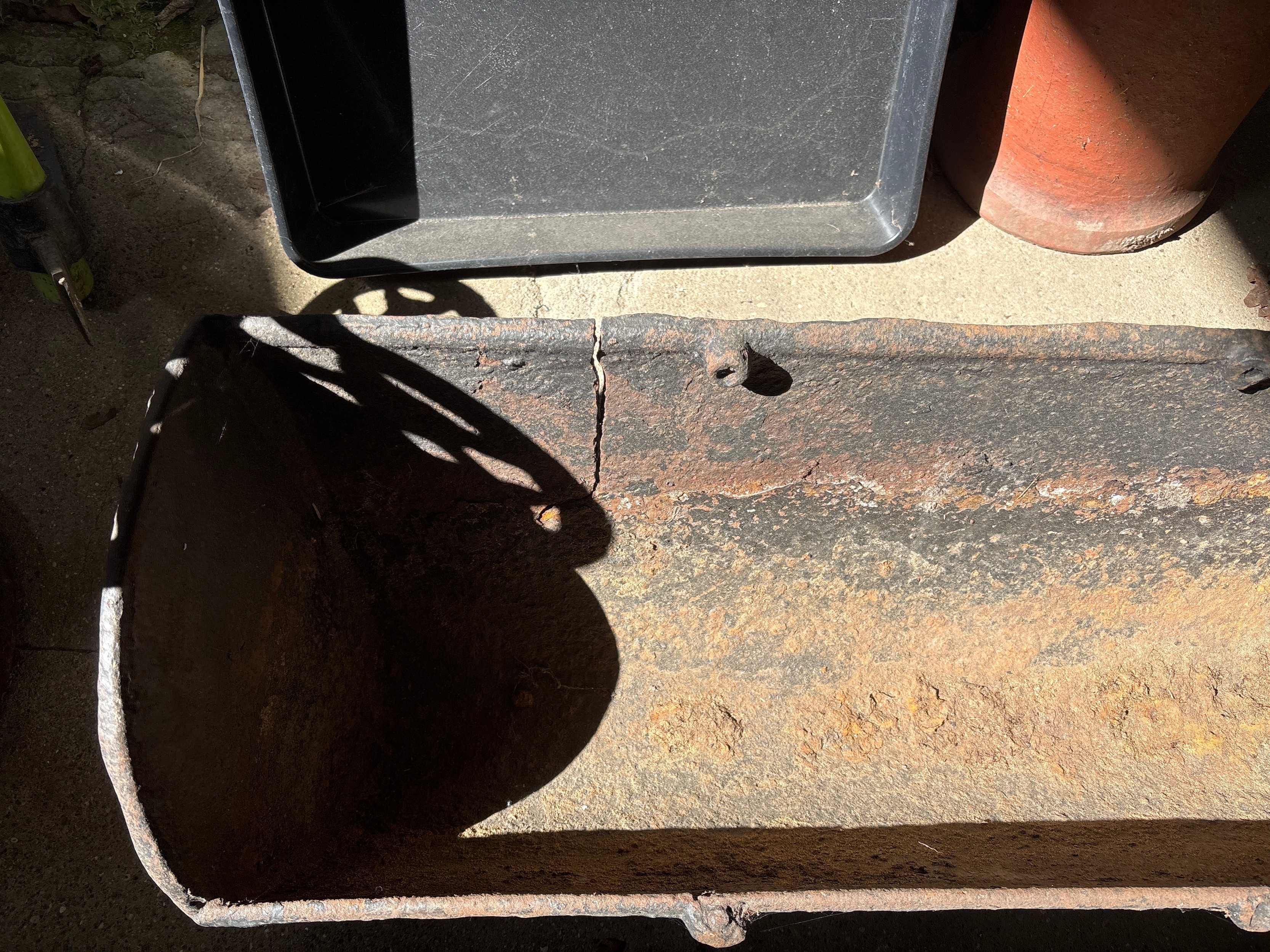 A large cast iron pig trough - 160cm long