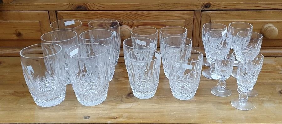 Set of Waterford, viz:- six cut glass tumblers, a matching set of six smaller cut glass tumblers and four small wine glasses and three liqueur glasses ensuite (19)